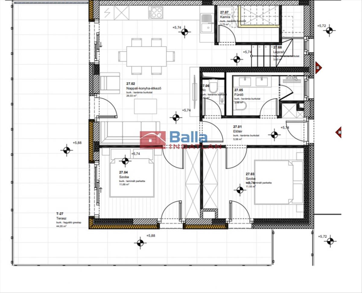 118 m2 alapterülettel, 43 m2 terasszal, 81 m2 tetőterasszal apartman eladó.