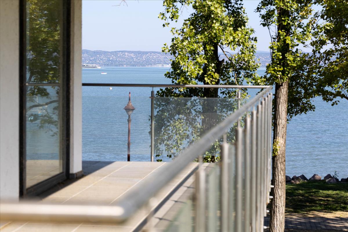 Az ötemeletes apartmanház közvetlenül a Balaton partra (szabadstrand) épült,