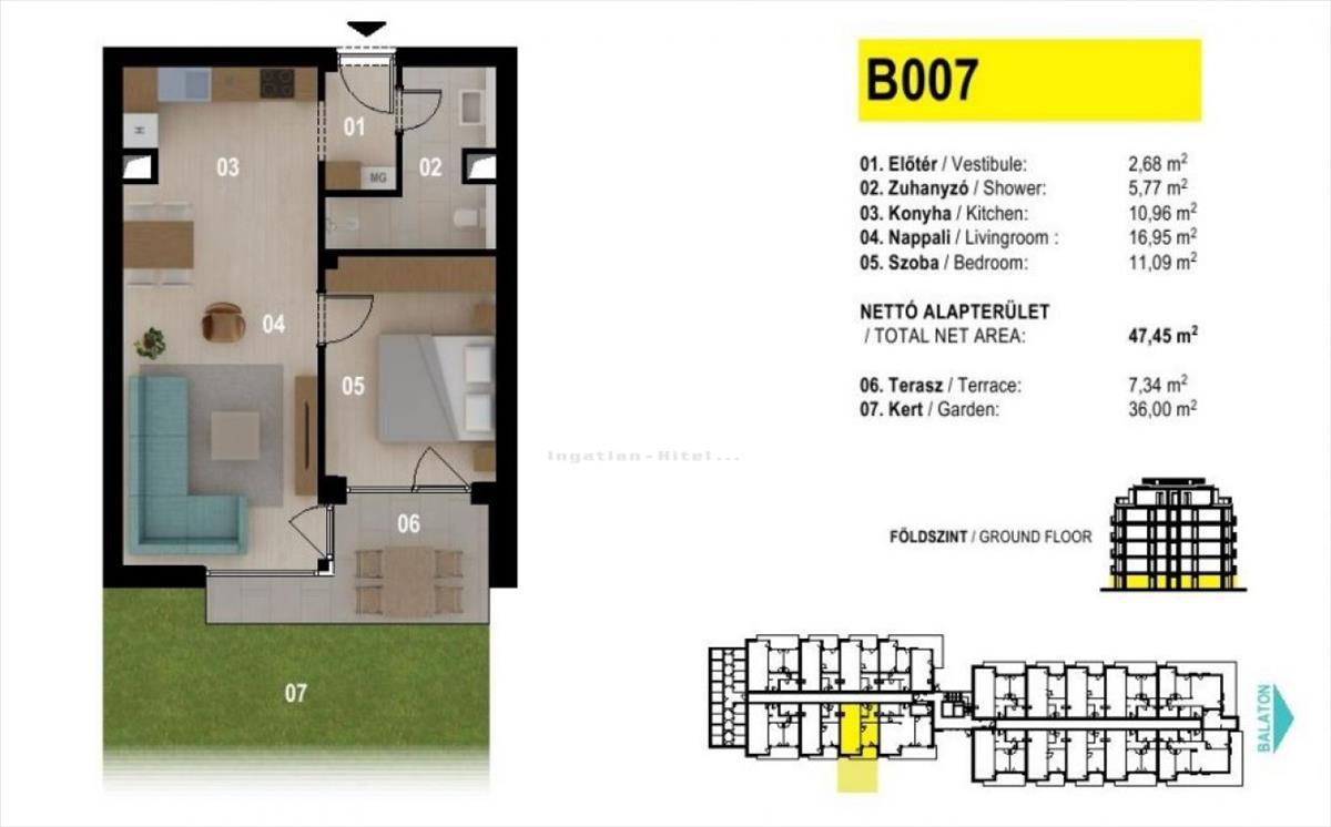 Kertkapcsolatos, panorámás, vízparti LAKÁS,gondos és alapos tervezői munka eredményeként került megvalósításra. Fontos szempont volt a praktikum, a használhatóság, a fenntarthatóság, és még sok más fontos paraméter, melyek a korábbi építkezések tapasztalatai alapján, a vevők érdekében súlyozottan lettek figyelembe véve.
