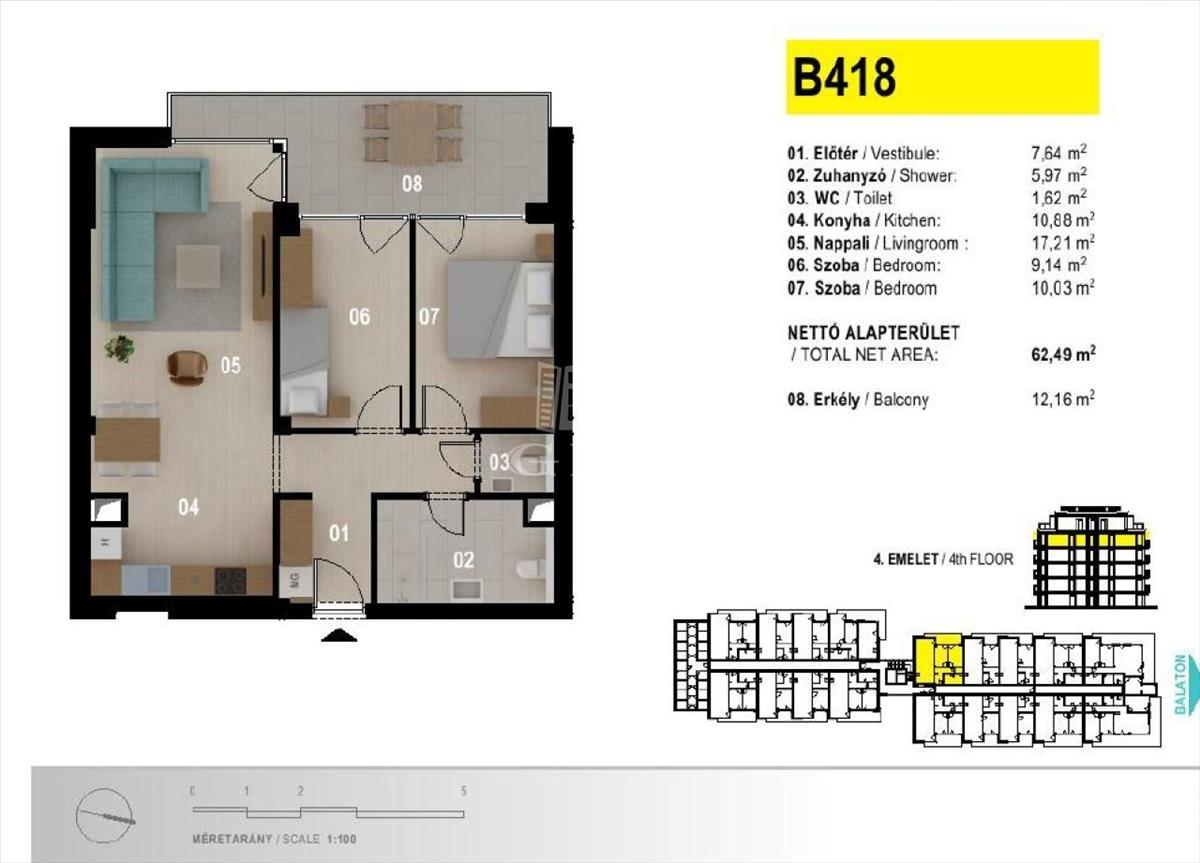 Az ötemeletes apartmanház a Balatonra merőlegesen helyezkedik el, így biztosítva a lakásokból az örök balatoni panorámát tulajdonosainak. Modern, új építésű, prémium minőségű apartmanok várják Önt, közvetlenül a vízparton. Az ingatlan előtt húzódó több mint 3 km hosszú szabad strand gondozott zöldterületekkel, parti sétányokkal és sportolási lehetőségeket kínáló kölcsönzőhelyekkel szolgálja ki az itt nyaralók igényeit.