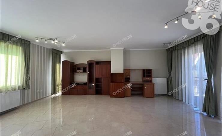 Hatalmas világos terek, nappali, ebédlő, konyha egyben. Klimatizált. Egyedi konyhabútorral az ablakok drapériázva vannak.