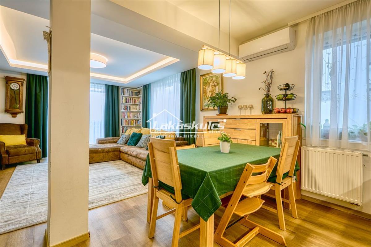 -Saját, privát kert – ideális pihenéshez vagy családoknak-Társasházhoz tartozó közös kert-Csendes ház, jó lakóközösség-Kiváló elrendezés, élhető terek