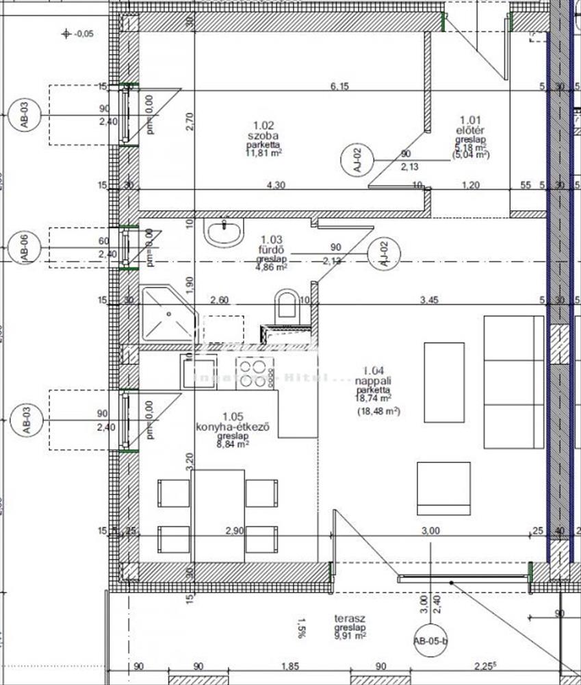 -Lakás alapterülete: 48, 8 nm-Terasz: 9, 91 nm