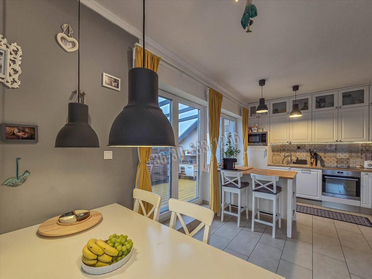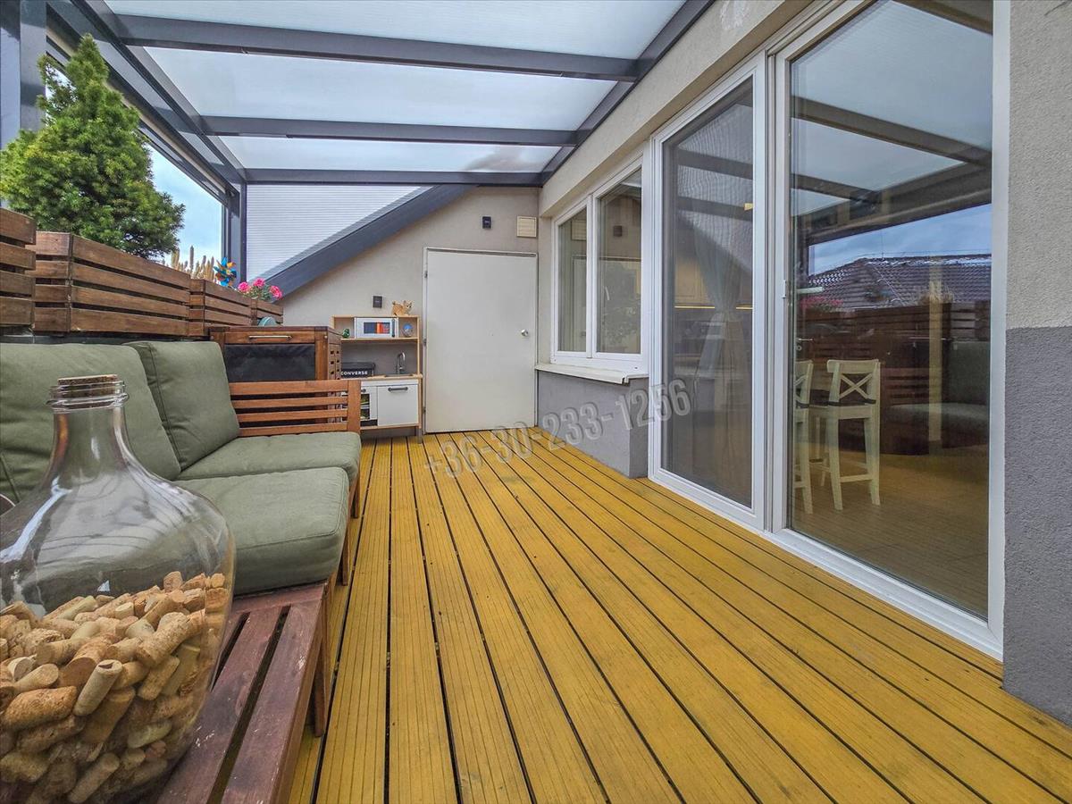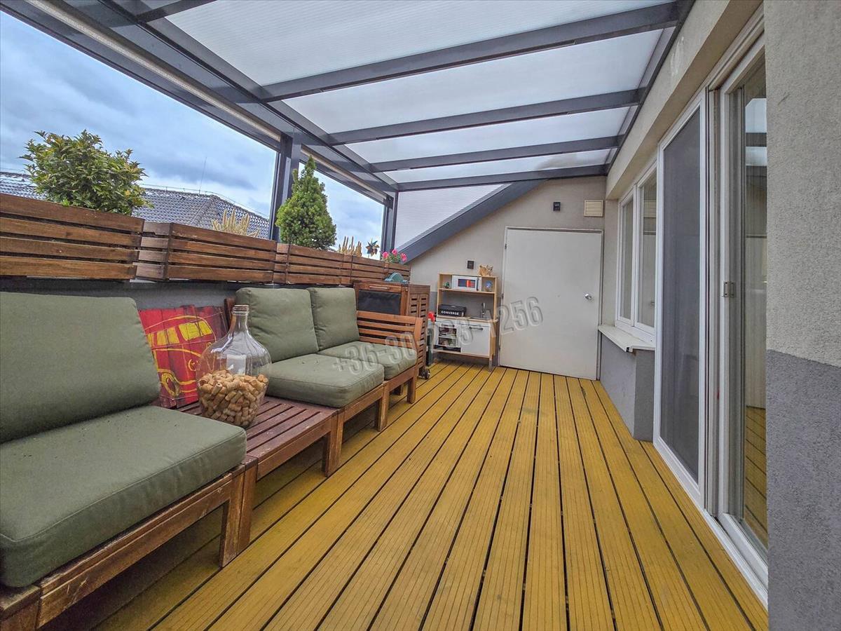 Extrák: gépesített, plafonig érő konyhabútor konyhaszigettel, minden ablakon alu redőny, fürdőben épített családi méretű zuhanyzó retró csempével (wc is), hűtő/fűtő klíma, teraszon fedett pergola + szél- víz és uv álló roló. Fűtése: házközponti gázkazán egyedi mérővel.