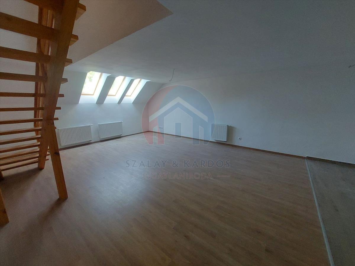 A lakás első emeleti, az alsó szinten található az amerikai-konyhás nappali, hálószoba és fürdőszoba. Az emeleti részén még két hálószoba, plusz egy fürdő lett kialakitva.