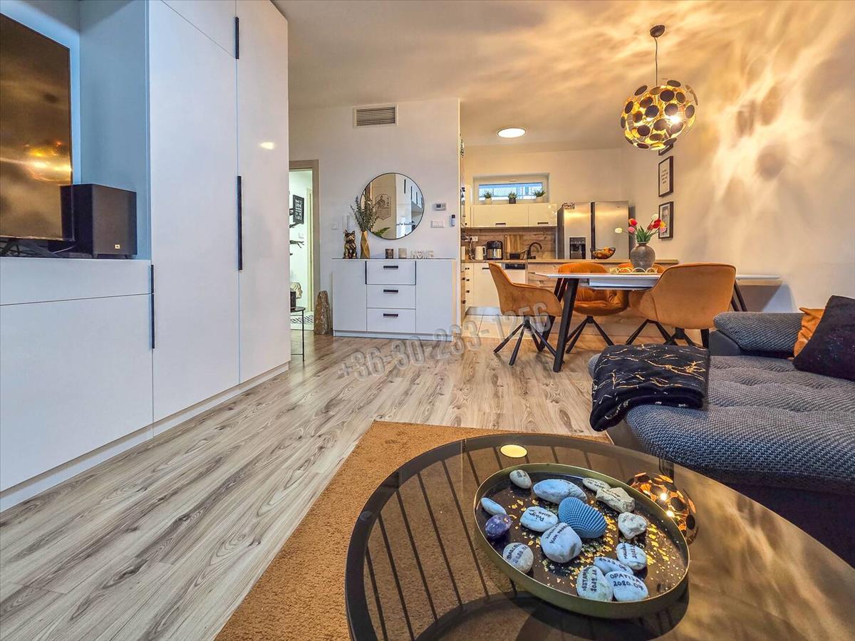Az 56 m²-es amerikai konyhás nappali + 1 hálószobás lakás modern, fiatalos kialakítású, minden részletében a kényelmet szolgálja. A plafonig érő beépített szekrények, az újszerű konyhabútor konyhaszigettel, a kádas fürdőszoba, a külön WC és a tágas előszoba harmonikus, letisztult életteret biztosítanak.