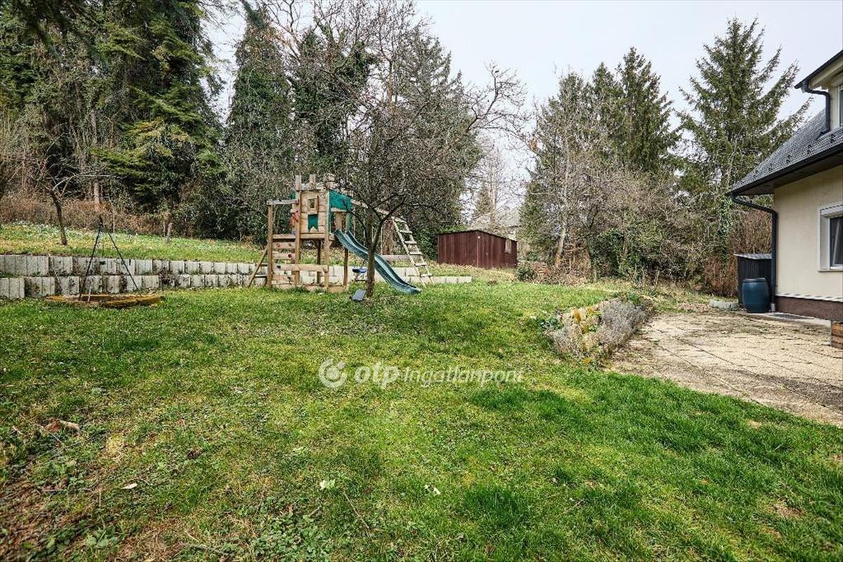 Parkosított kert játszótérrel, gyümölcs- és szelídgesztenyefákkal