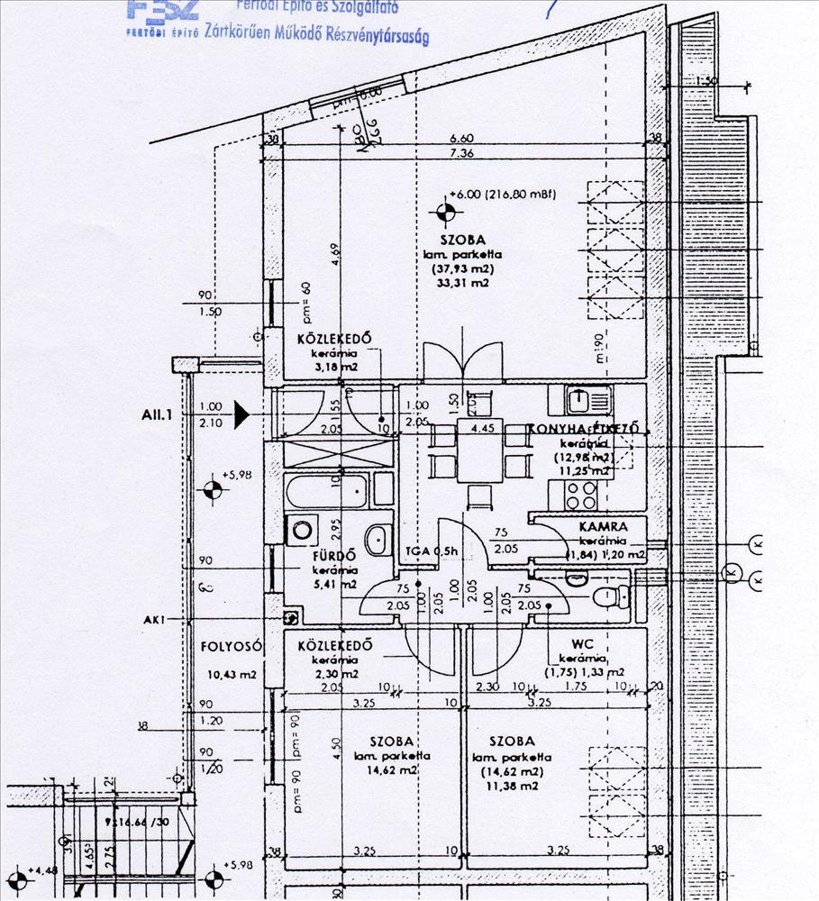 A lakás: 90 m2, (3 szoba+konyha+spajz+fürdő+Wc+előtér)