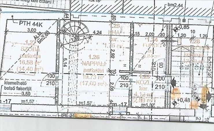 Az itt hirdetett lakás ( l7) bruttó 73 nm, nettó 59 nm. Az alsó szinten