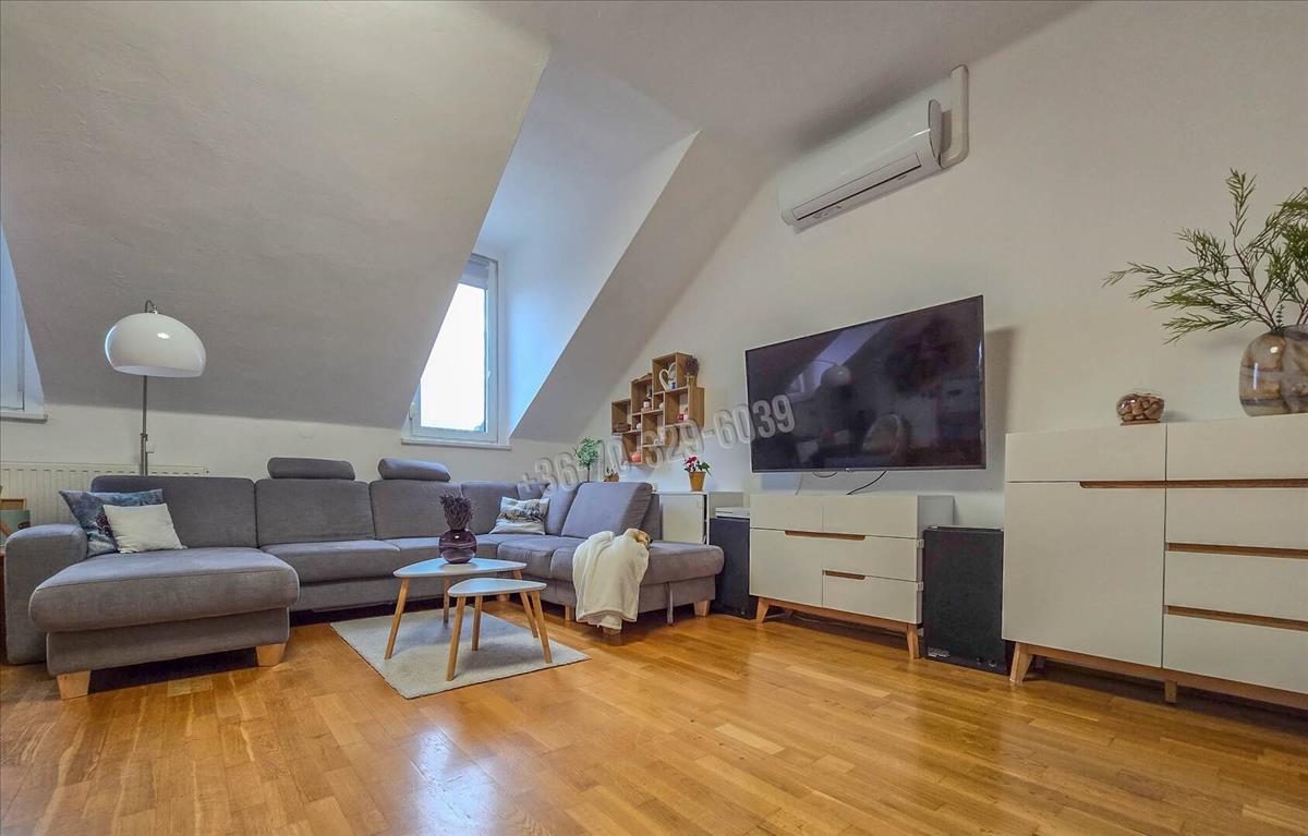 A történelmi belváros egyik legszebb részén, egy mindössze 9 lakásos, rendezett társasház legfelső szintjén található ez a 106 nm-es, igazán tágas, világos lakás. Már belépéskor érezni lehet: itt tér van, levegő van, nyugalom van.