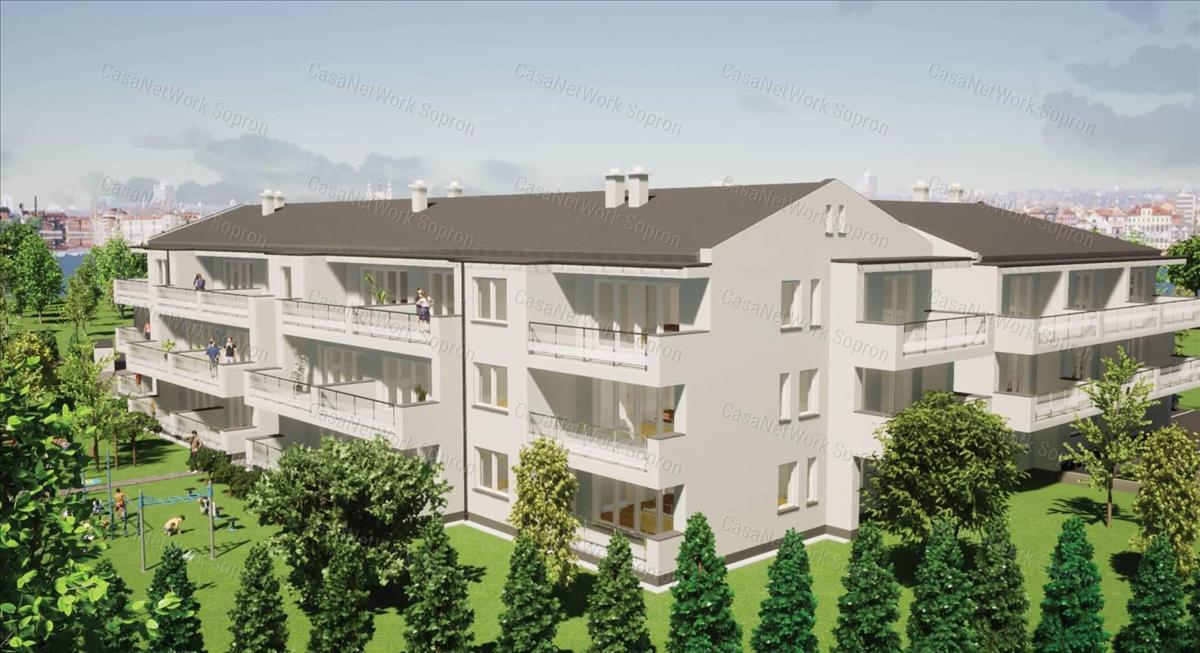 Sopron kertvárosi övezetében, most induló új projekt keretében eladó egy 82 m2 méretű nappali+3 szobás, nagy erkélyes, 1. emeleti lakás.