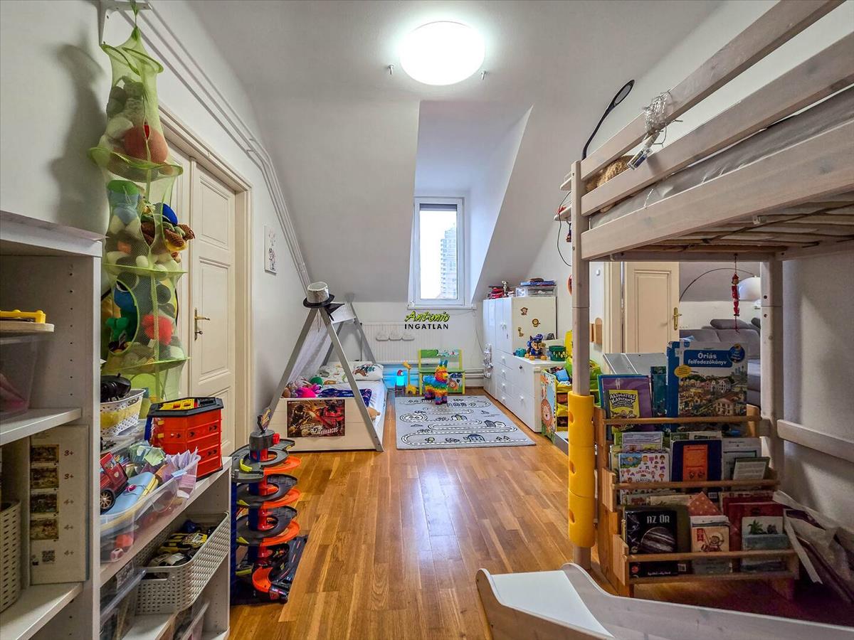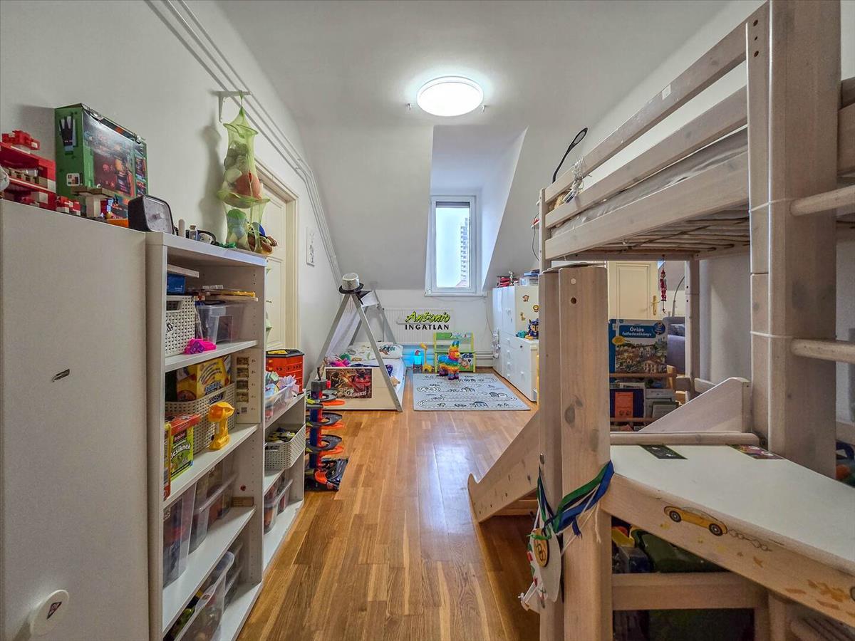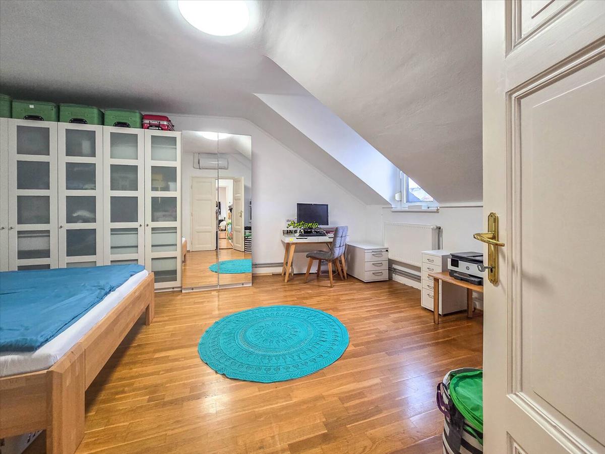 A történelmi belváros egyik legszebb részén, egy mindössze 9 lakásos, rendezett társasház legfelső szintjén található ez a 106 nm -es, igazán tágas, világos lakás. Már belépéskor érezni lehet: itt tér van, levegő van, nyugalom van.