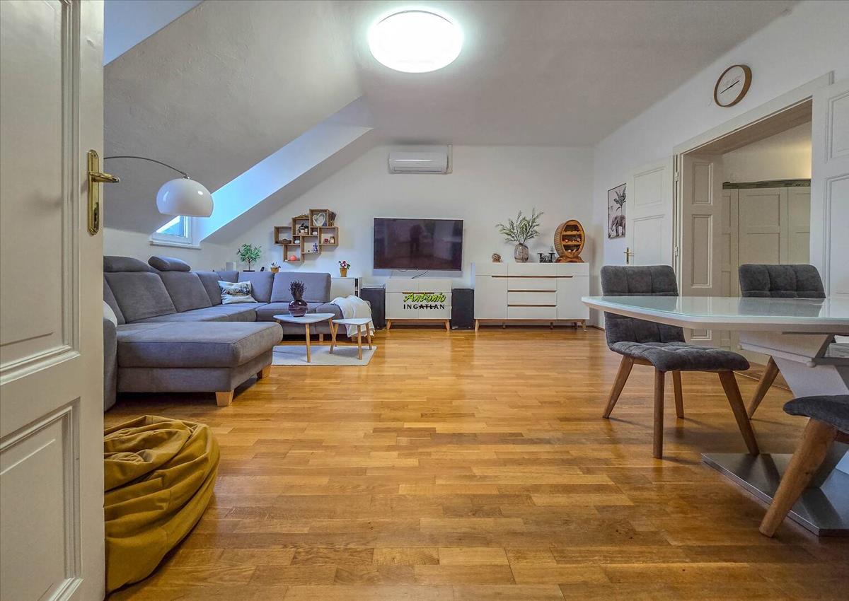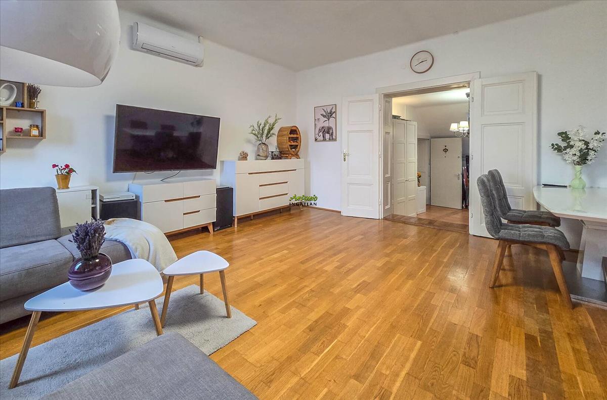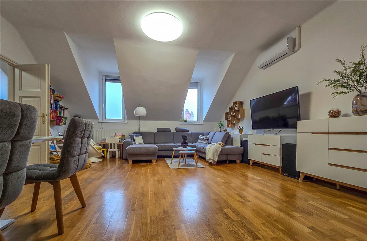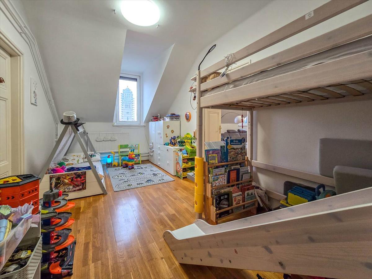 A történelmi belváros egyik legszebb részén, egy mindössze 9 lakásos, rendezett társasház legfelső szintjén található ez a 106 nm -es, igazán tágas, világos lakás. Már belépéskor érezni lehet: itt tér van, levegő van, nyugalom van.