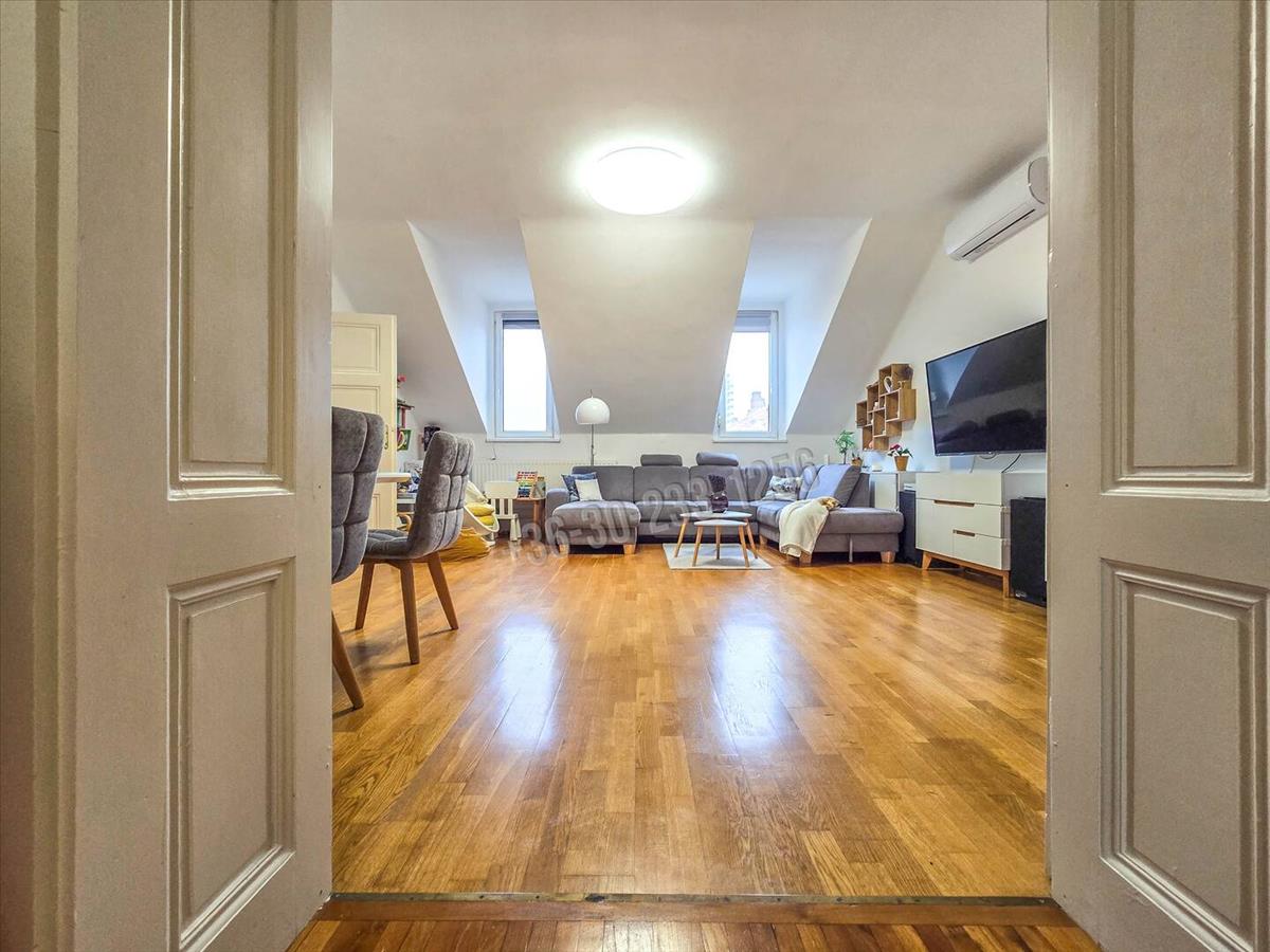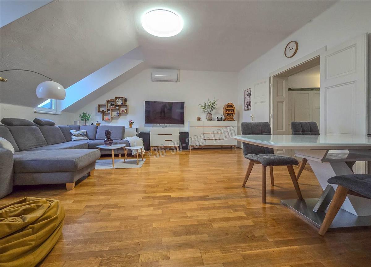 A történelmi belváros egyik legszebb részén, egy mindössze 9 lakásos, rendezett társasház legfelső szintjén található ez a 106 nm-es, igazán tágas, világos lakás. Már belépéskor érezni lehet: itt tér van, levegő van, nyugalom van.