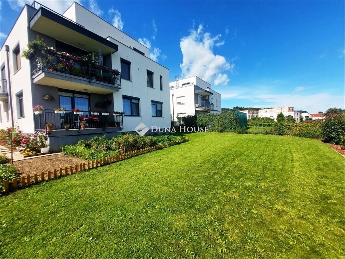 Sopronban az Egeredi dombi lakóparkban eladó, egy 2020-ban épült, tégla szerkezetű tágas és világos 78m2-es földszinti társasházi lakás, amely kitűnő állapotú és számos kényelmi funkcióval rendelkezik. Helyiségei: amerikai nappali konyha étkező, két szoba, előszoba, fürdő, külön wc, kamra, és fedett terasz. a lakást földszinti elhelyezkedése és napfényes fényviszonyai igazán vonzóvá teszik. Gáz cirkó fűtés biztosítja a kellemes hőmérsékletet a hidegebb napokon is. a lakás nem csupán kitűnő állapotú, de a modern igényeknek megfelelően kialakított, tágas és világos terekkel büszkélkedik. Egy 79m2-es saját kert teszi teljessé az otthon érzetét, ami kiváló lehetőség pihenésre és kertészkedésre. Ezen felül a lakóközösség tagjaként élvezheti a közös használatú kert nyújtotta előnyöket is. a kor elvárásainak megfelelően a fedett terasz tökéletes helyszínt biztosít a baráti összejöveteleknek vagy egy csendes reggeli kávézásnak. a kényelmet tovább növeli, hogy teremgarázs bérlési lehetőség is rendelkezésre áll, így nem kell az utcán parkolnia. Ez a tökéletes választás lehet azok számára, akik a város és a természet közelségét, de mégis egy csendes, nyugodt otthoni környezetet szeretnének. Sopron, ahol ez a lenyűgöző ingatlan található, Magyarország egyik legkedveltebb települése. Kiváló elhelyezkedése miatt a természet kedvelői és a történelem iránt érdeklődők számára egyaránt vonzó választás. a város gazdag történelmi örökséggel és csodálatos természeti környezettel rendelkezik. Sopron egy élénk, de mégis barátságos város, ahol a kulturális programok és a természet közelsége tökéletes egyensúlyban van. Ha Ön egy olyan helyet keres, ahol a modern kényelem és a természetes szépség egyesül, ne keressen tovább. FIX 3% lakáshitelre megvehető