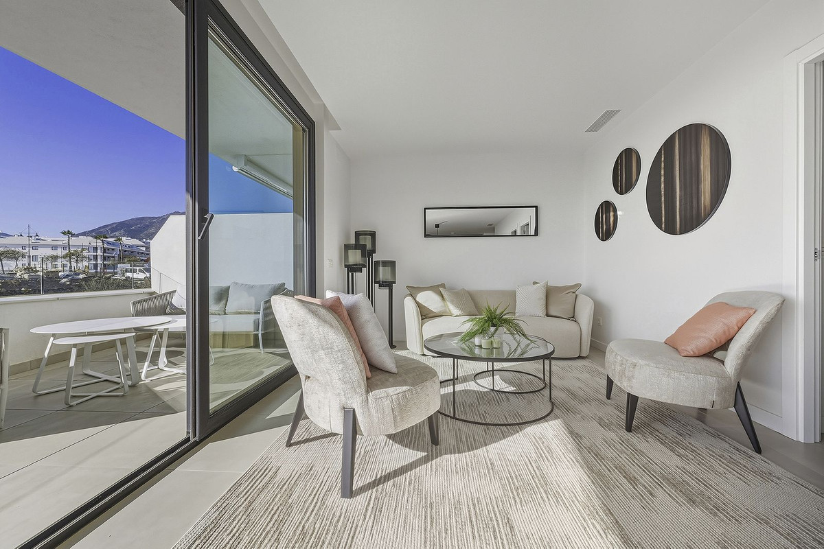 Az ingatlan délnyugati fekvésű, bőséges természetes fényt és lenyűgöző panorámás kilátást nyújt a tengerre és a környező hegyekre. Az apartman 67 m ² -es, 19 m ² -es fedett terasszal rendelkezik, ideális a szabadtéri étkezéshez és a mediterrán naplementéknek.