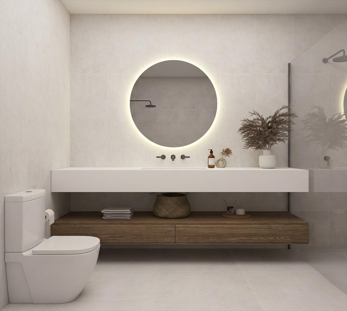 - Fürdőszoba padlófűtéssel és Roca vagy hasonló szaniteráru