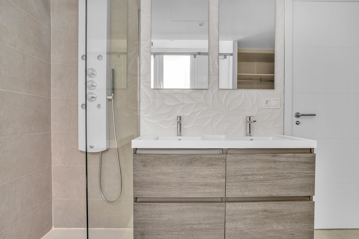 Ez a modern 3 hálószobás, 2-fürdőszobás apartman található, a legprivilégiumosabb helyen az egyik legismertebb komplexumok a La cala de Mijas - az első sorban, az alsó szinten, közelebb a gyalogos kapu. Ez panorámás, akadálytalan kilátást biztosít a tengerre, nincsenek épületek elöl, és nulla lehetőséget biztosít a jövőbeli építkezésre, amely eltorlaszolja a tájat.