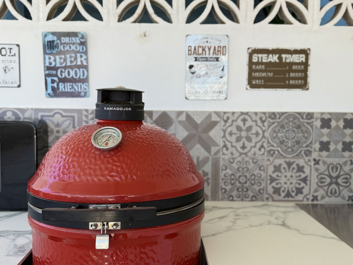 A 98 m ² -es terasz, ugyanazon a szinten található, mint a lakás, kiterjeszti a nappali szabadban. Ez magában foglalja a teljesen felszerelt szabadtéri konyha barbecue, mosogató, és hűtőszekrény, egy étkező hat, egy bár szakasz, szabadtéri zuhany, és még egy saját edzőterem. a terasz egy része üvegbe van zárva, és jelenleg otthoni irodaként használják, AC-val - ami szintén tökéletesen szolgálhat vendégszobaként.