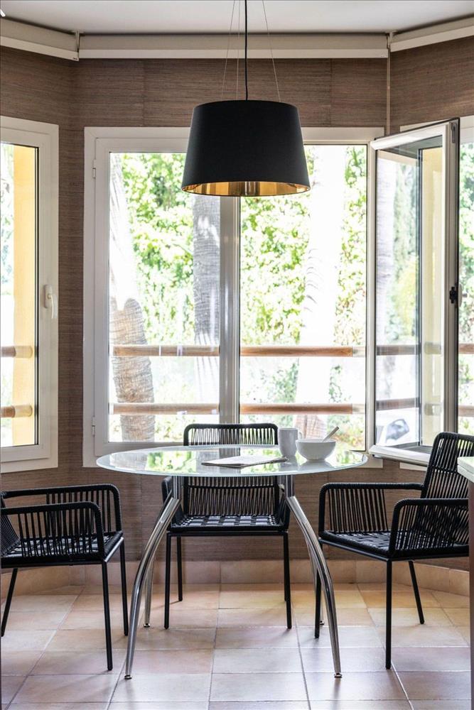 Élvezze az elegancia travertin márvány falak a teraszon, és egy teljesen felszerelt konyha egy hangulatos reggeli sarok. a nappali és az étkező akadálytalanul kapcsolódik a fedett teraszhoz, ideális a vendégek szórakoztatására vagy pihenésre, miközben élvezi a lélegzetelállító kilátást.