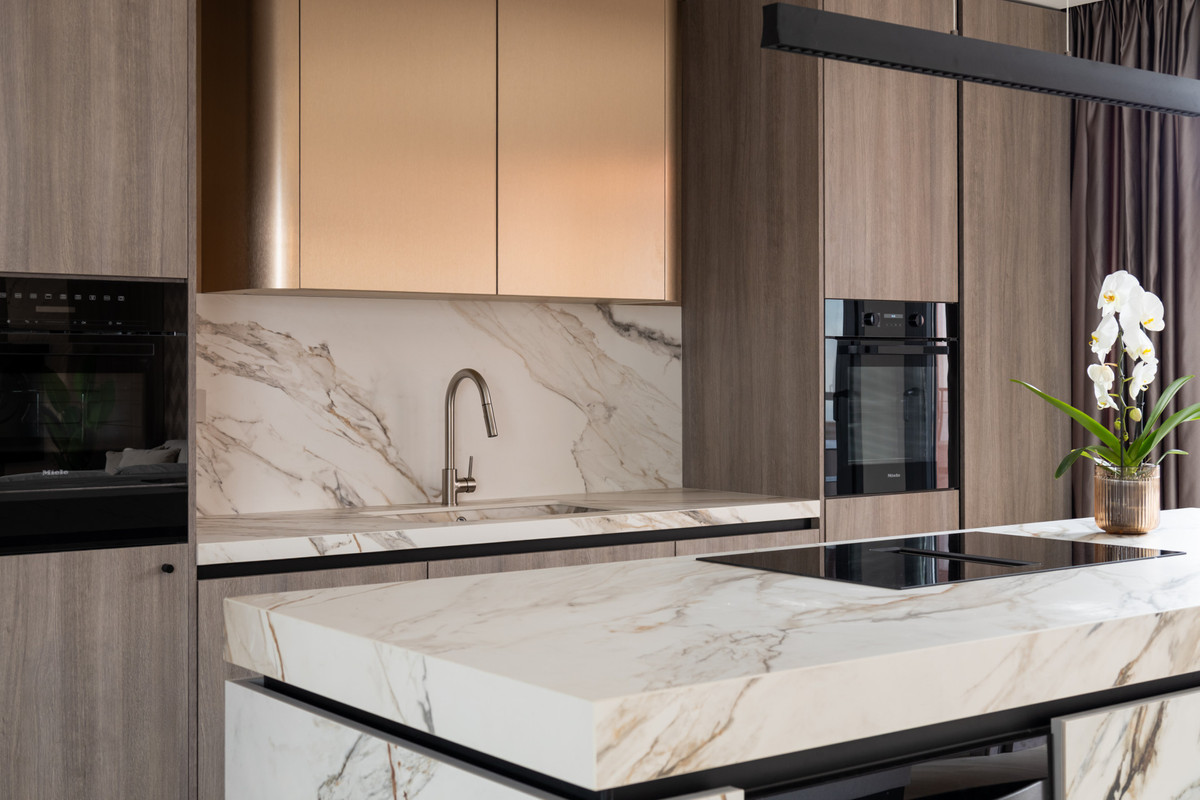 A 70 m ² -es nyílt terû élõ, étkezõ és konyhaterület bõséges természetes fényt kínál, tágas eleganciával. Az otthon három nyugodt hálószoba és három gyönyörűen berendezett fürdőszoba, a fő lakosztály kínál designer ingyenes fürdőkád és falra szerelt esőztető zuhanyzó. Minden részlet tükrözi a mesterséget és a harmóniát: Arklam kő pult, a nyilatkozat konyha sziget, Miele prémium készülékek, és egy építmény-borhűtő komplementary osztráán-készített bútortáblák és tailor-készített tárolási megoldások. a belga parketta és a Hansgrohe csiszolt bronz szerelvényei alulértékelt kifinomultságot eredményeznek, míg a motorizált függönysínek és redőnyök kényelmet hoznak.