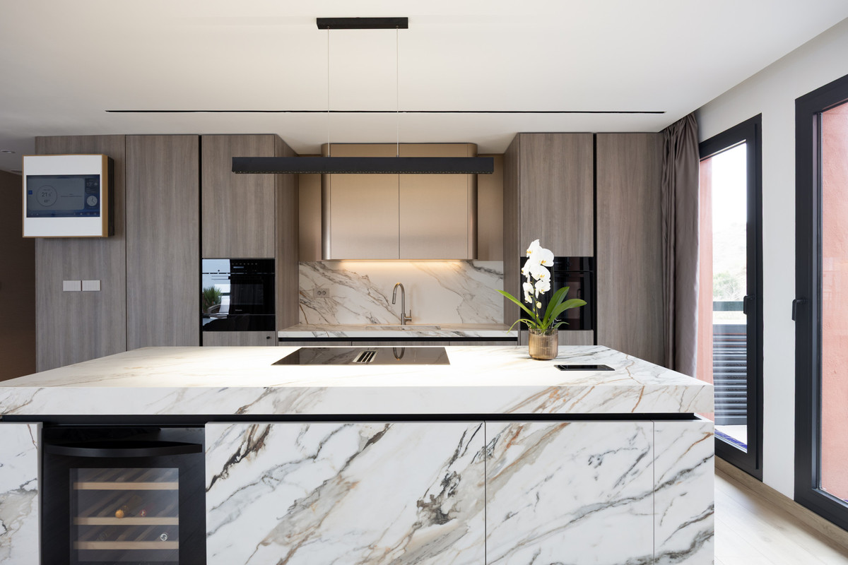 Ez a kivételes lakás a design, a kényelem és a panoráma szépség tökéletes keveréke. a 145 m ² -es beépített területen két, összesen 45 m ² -es saját terasszal rendelkezik, melyek mindegyike megfontoltan készült buja zöldséggel, automata öntözőrendszerrel és saját jacuzzival. a 270 ° -os kilátás a tengert, a partvidéket és a környező hegyeket foglalja magába - a tiszta napokon még Gibraltár és Afrika távoli partjai is megtisztelik a horizontot. Egy 14 m ² -es garázs közvetlen lifttel biztosítja a kényelmet és a kizárólagosságot.