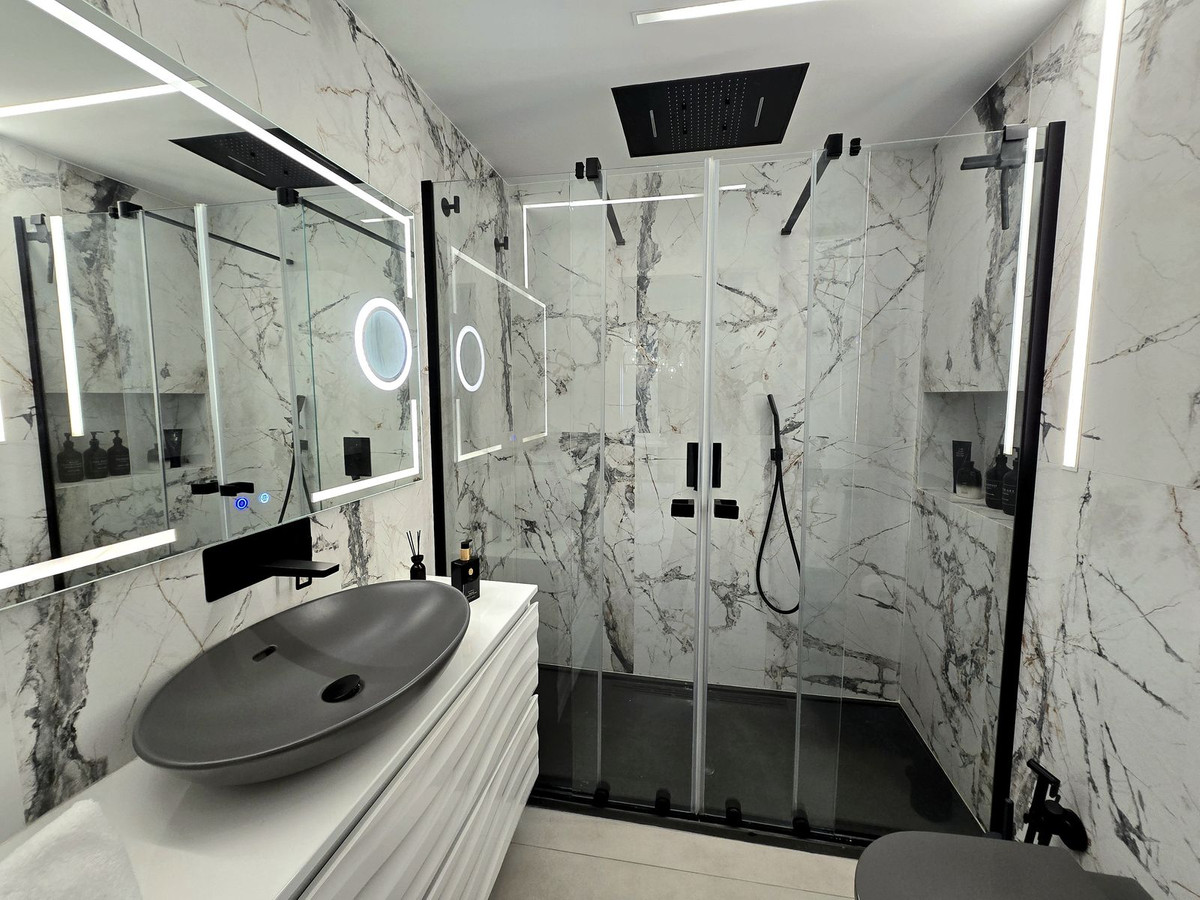 A szálloda 155 m ² -es, 2 tágas hálószobára és 3 modern fürdőszobára osztott építési területet kínál, melyek mindegyike kiváló minőségű. Fényes nappali közvetlen hozzáférést biztosít a terasz, kiváló beltéri-kültéri kapcsolat.