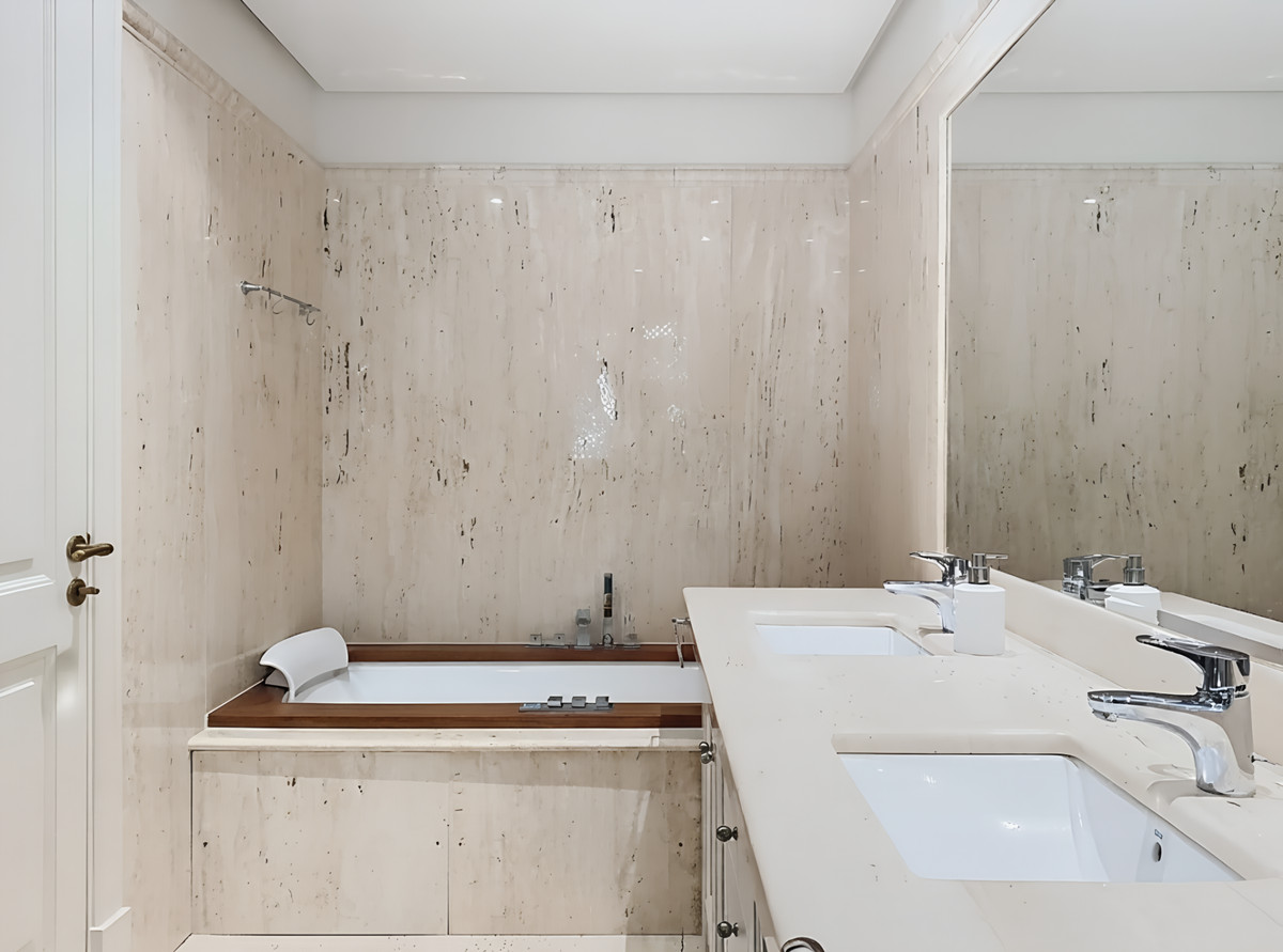 A belsŠhelység kiemelkedik a magas minŠségû befejezések és aprólékos konstrukció: akusztikus szigetelés egységek, elektromos redŠnyök, real bianco krém márvány padló, légkondicionáló, konnex otthoni automatizálási rendszer, elektromos padlófűtés, és nagy ablakok, amelyek maximalizálják a természetes fényt és kilátást. Az egész tér az időtlen elegancia és jólét érzését kelti.