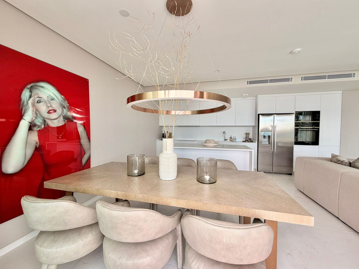 Az apartman modern, nyitott terű, modern konyhával ellátott, modern, a tér és a természetes fény maximalizálására tervezett nappali és étkező. a déli fekvésű tájolás biztosítja, hogy a belső terek elárasztják a napsütést egész nap, míg a tágas saját terasz lenyűgöző kilátás nyílik a tengerre.