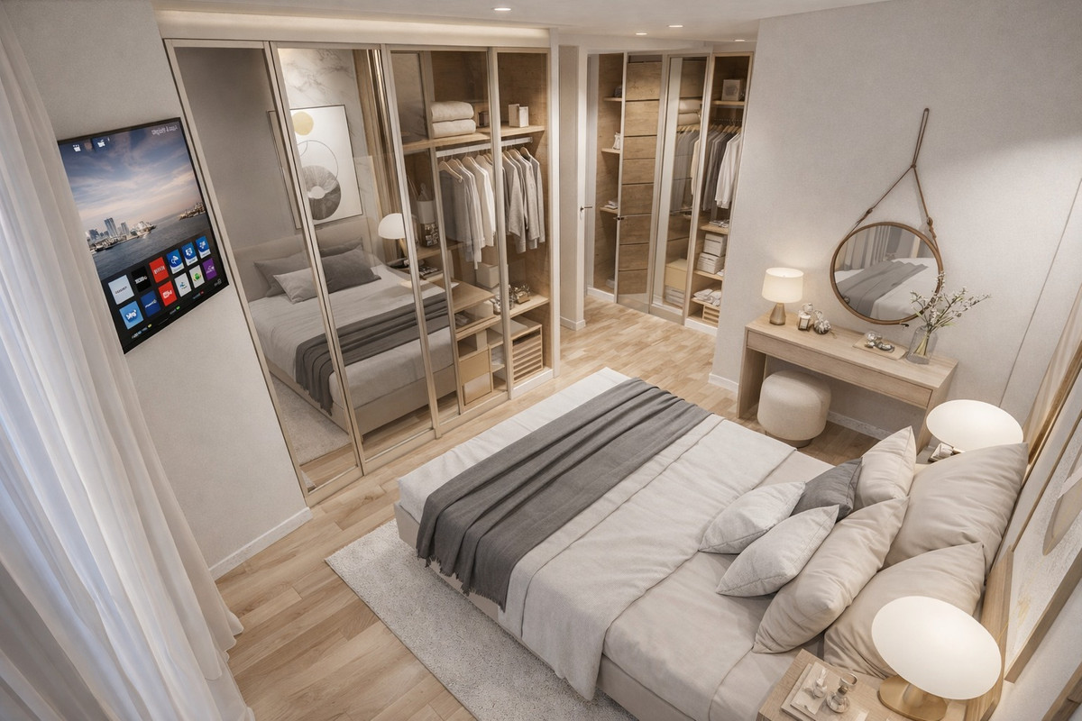 Az épület összesen 8 gondosan kialakított, magas színvonalú apartmanból áll, amelyek beépített légkondicionálóval és teljesen felszerelt konyhákkal rendelkeznek. Az otthonok kitûnnek funkcionális elrendezéseik, világos nyílt tereik és modern kialakításuk miatt, melyek a kényelemre és a jólétre összpontosítanak.