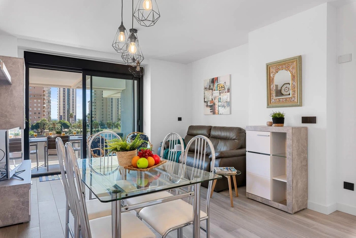 A modern és világos stílusban kialakított apartman tágas nappali-étkező, közvetlen hozzáférést biztosít egy nagy teraszhoz, ideális a pihenéshez, miközben a tengerre és a Calpe & apos-sóra néz. a nyitott-terv konyha teljesen felszerelt kerámia tűzhely, mosogatógép, hűtőszekrény és mosógép.