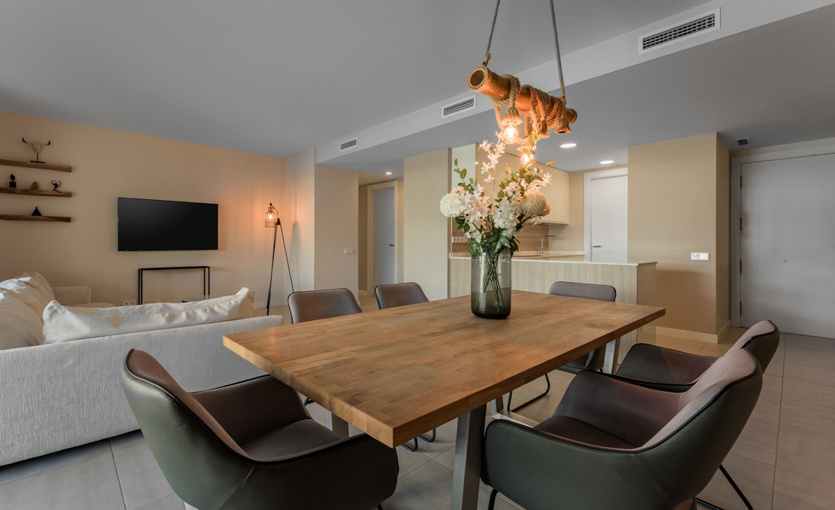 Az apartman nyugati fekvésű és a közösségi medencére néz, vonzó kilátást és gyönyörű délutáni és esti fényt kínál - ideális a naplementék és a nyugodt mediterrán életmód élvezetére.