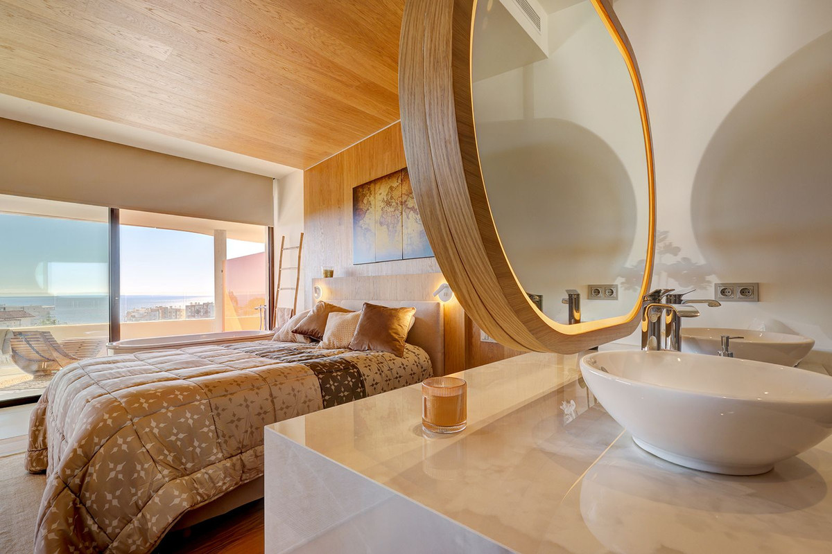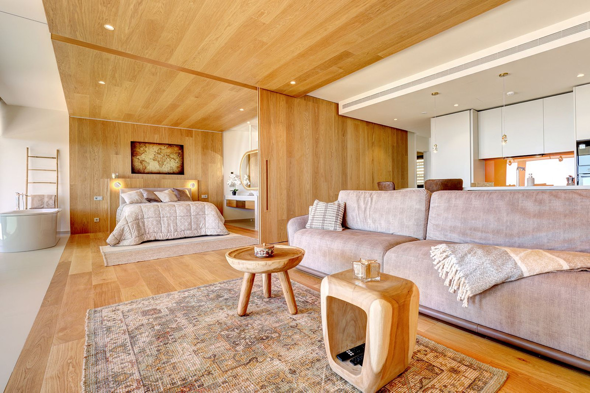 A közvetlen déli orientációból kiindulva az otthon gyönyörű természetes fényt és gyönyörű kilátás nyílik a tengerre a nappaliból és a teraszról. a belső tér ötvözi a modern design meleg, kiváló minőségű befejezések. Az elrendezés okos és nyitott, a padló-to-plafon ablakok, amelyek növelik a fényerő és a tér. a hálószobához tartozik egy csúszófal, amely a nappaliba nyílik, valamint egy luxus és rugalmas tervezési elem.