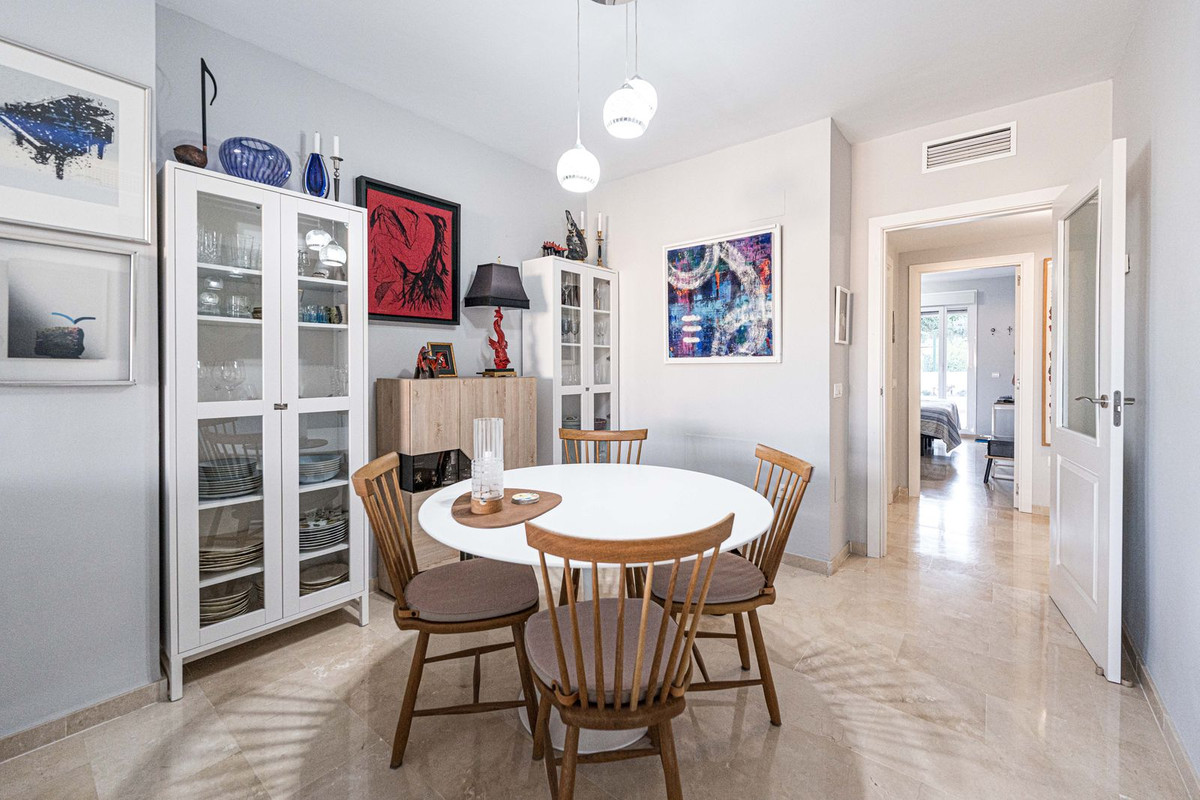 A fő teraszról megtekintheti a közös úszómedencét és a parkosított kertet, míg a világos nappaliból és a hálószobából megközelíthető első teraszt Lumon üvegfüggönyökkel zárták be. Ez a kiegészítő hely tökéletes helyet teremt az olvasáshoz, az étkezéshez, vagy egyszerűen a La Duquesa Golf pálya panorámás kilátásához, a környező hegyekhez és a békés andalúziai vidékhez.