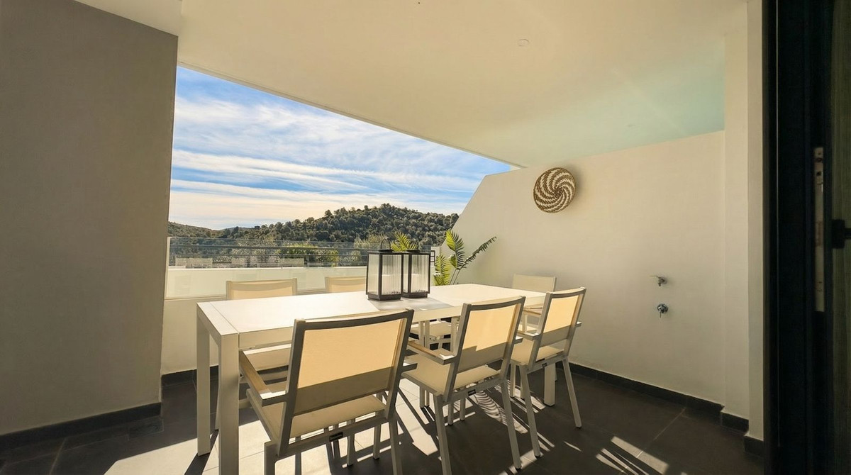 Továbbá, van egy második északi fekvésű terasz kilátással a Mijas dombokra és az üdülőhely & apos; s lagoon, ideális az esti nap.