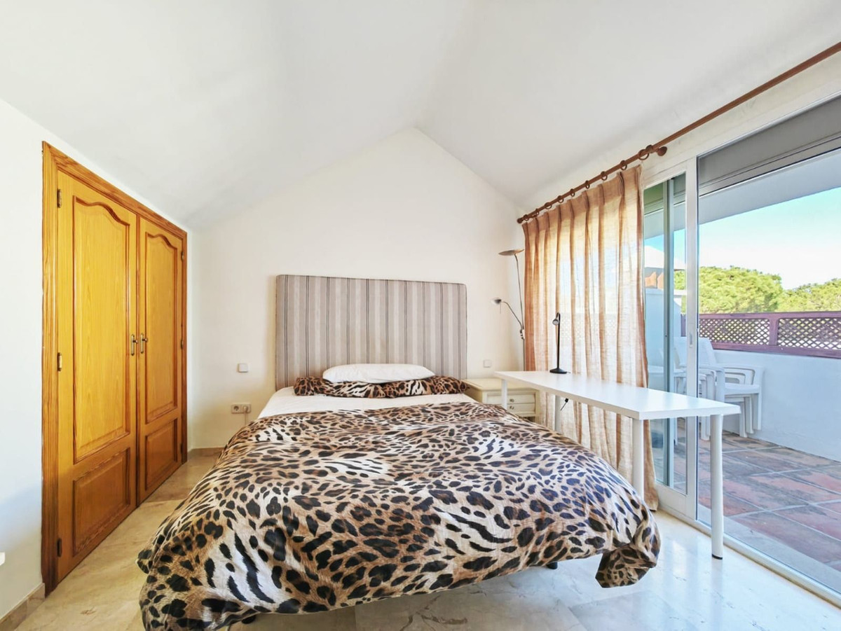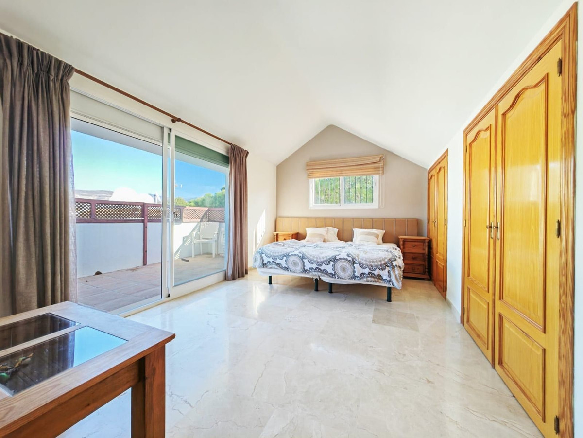 Tágas négyszobás duplex penthouse található a déli után Los Pinos de Aloha komplexum, Nueva Andalucía, Marbella. Ez a zárt közösség biztonságos és nyugodt környezetet kínál megfigyelő kamerákkal, esti biztonsággal, gyönyörűen karbantartott közösségi kerttel és közös úszómedencével. a lakók a környező táj festői látványát, valamint a részleges tengeri kilátást élvezhetik.
