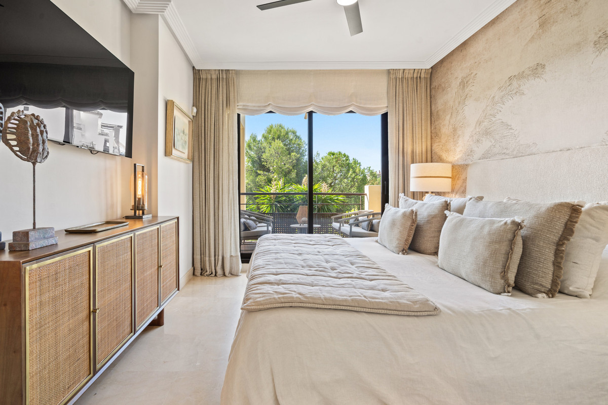 Fedezze fel ezt a világos és elegáns 3 hálószobás, 2-fürdőszoba apartman található a délutáni Los Pinos közösség Los Arqueros Golf és Country Club. Az ingatlan békés és biztonságos környezetben található, magas fekvésű, gyönyörű kilátással a kertekre és a Földközi-tengerre.