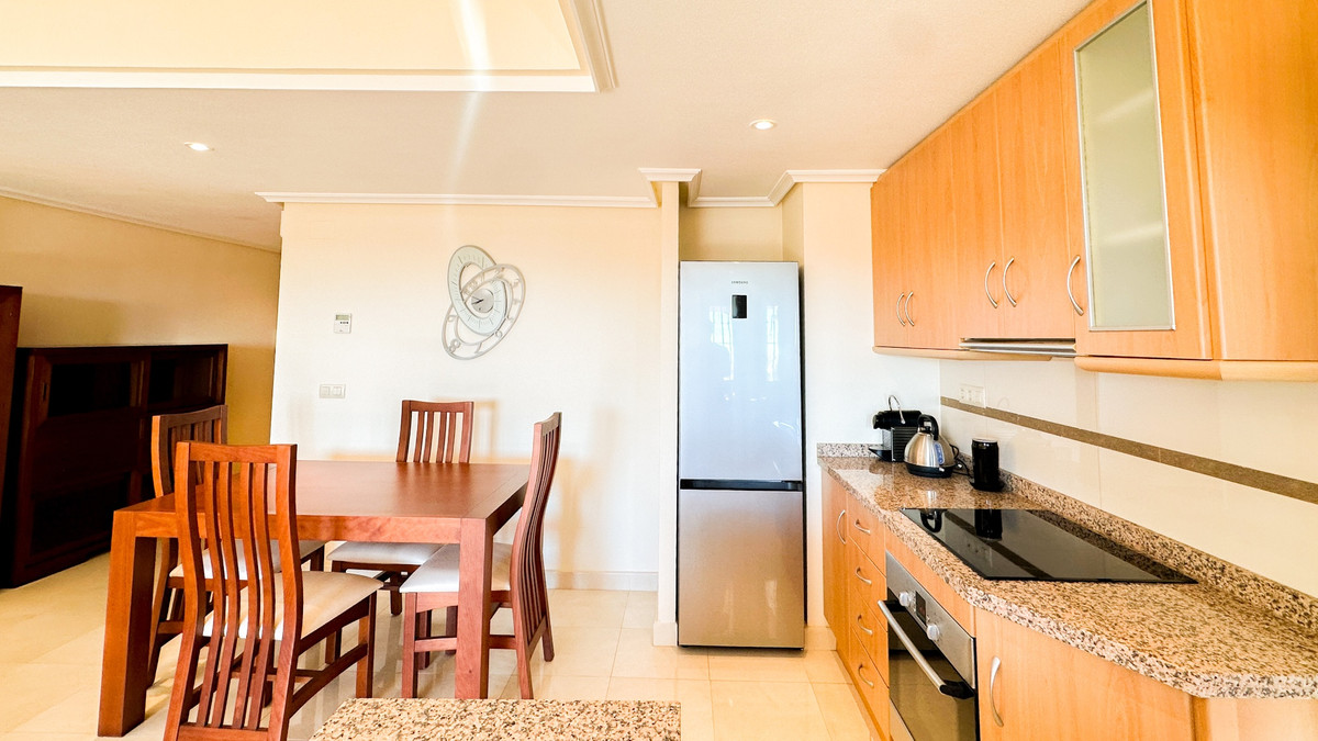 Az apartman teljesen berendezett magas színvonalú, és előnyös a déli fekvésű orientáció, amely lehetővé teszi a természetes fény elárasztja a nappali. a világos és tágas nyílt teraszra nyílik az élet és az étkező, ahol élvezheti a nyílt kilátást kiterjesztve a tengerre, így tökéletes hely pihenésre vagy szórakozásra.