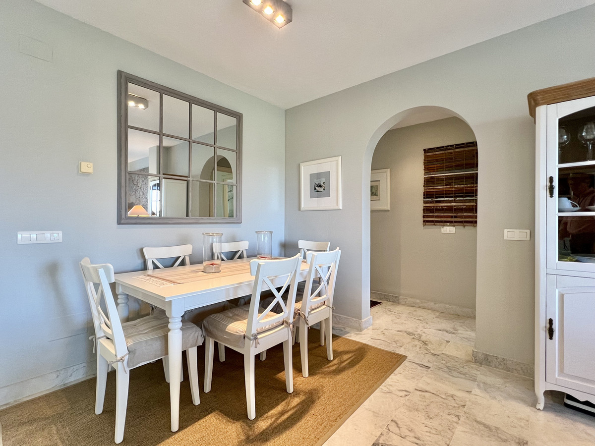 Gyönyörű első sor golf sarok apartman garnitúra egy szép lakossági strand oldalon komplexum Guadalmina Baja mindössze néhány lépésre a strandtól és a jól ismert tengerparti éttermek El Ancla, Makaó és Barbillon. Ez a szép és rendkívül jól tartsa apartman élvezze gyönyörű kilátás nyílik la Concha hegy Marbella, a Guadalmina Golf és az oldalsó tengerre néző. a zárt komplexum közös kertet és úszómedencét kínál. a bejárat egy tágas nappali és étkező, kandallóval, teljesen felszerelt konyha, közüzemi szoba. Egy külön folyosó biztosít hozzáférést a főhálószobához, a fürdőszobával, valamint egy másik két jó méretű, világos fürdőszobával. Van egy földalatti privát parkoló (15 m2) lifttel. 24 Órás biztonság.