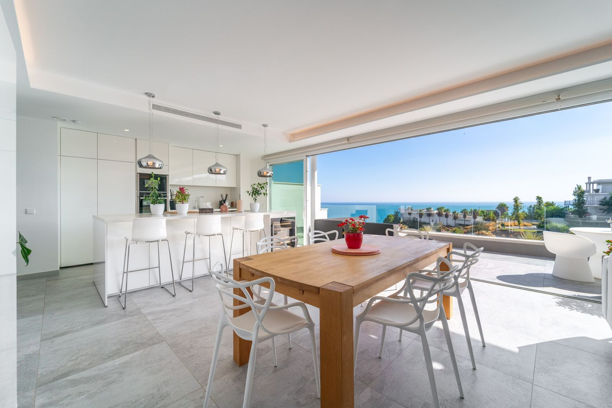 Üdvözöljük ebben a lenyűgöző penthouse apartman lélegzetelállító panorámás kilátás nyílik a tengerre. Amikor belépnek az ingatlanba, akár a bejárati ajtón, akár a személyes liften keresztül, azonnal el lesznek ragadtatva a csodálatos panorámás kilátástól. a tágas nappali zökkenőmentesen kapcsolódik a tágas teraszhoz, 9- méteres ablakkal büszkélkedve, amely 6 méter széles. Ez létrehoz egy tökéletes beltéri-kültéri életkörnyezetet, amely rengeteg helyet biztosít az ülő és étkező területeknek.