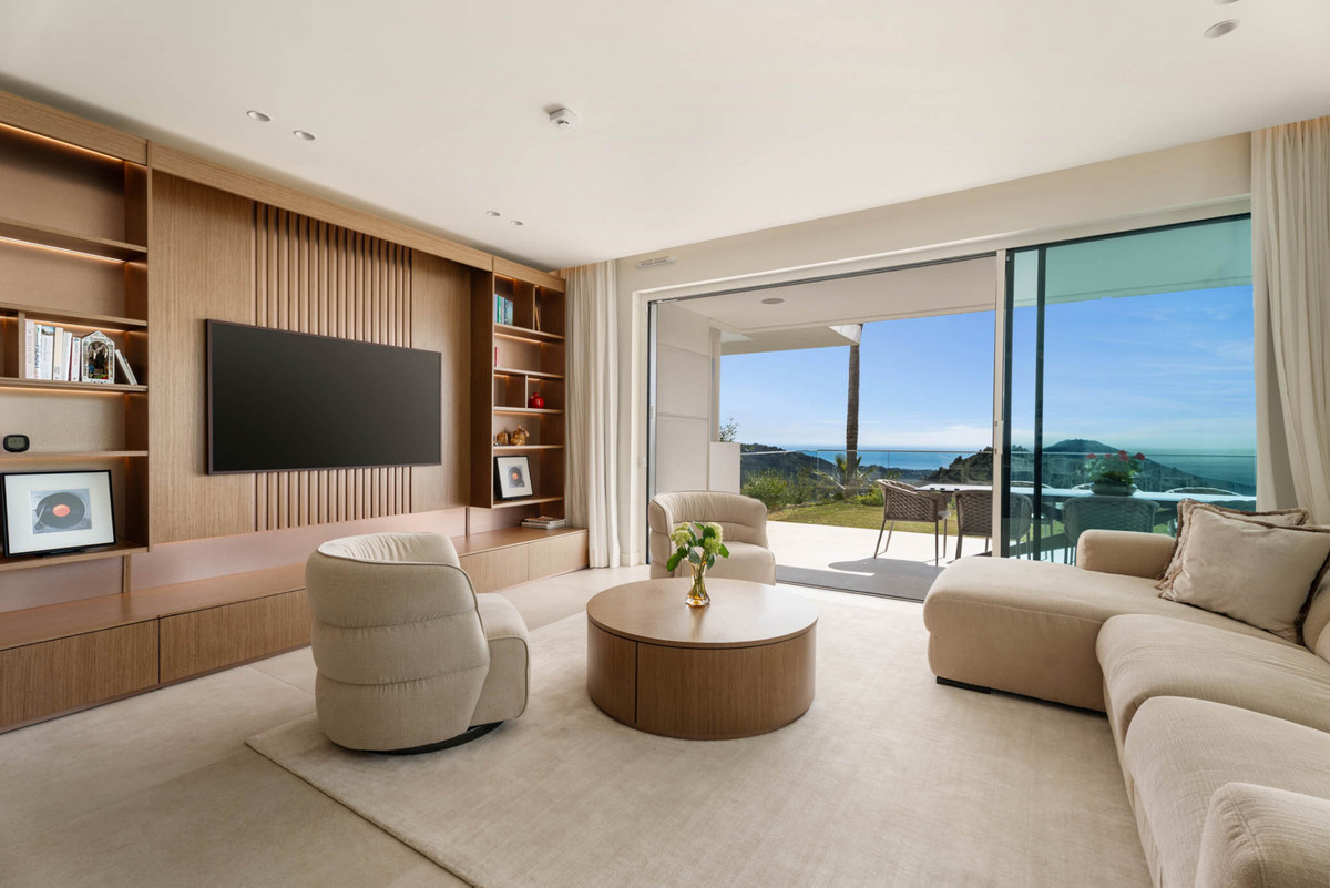 A nyílt terep és az étkező közvetlenül kapcsolódik a fedett teraszhoz a padlótól a mennyezetig húzódó tolóajtókon keresztül, így a belső és külső terek közötti folyadék átmenet jön létre. a terasz egy szabadtéri társalgó és étkező, kilátással a saját kertre és a mediterrán horizontra. Integrált hang a nappaliban és a teraszon javítja a beltéri-kültéri élményt, míg az orientáció rögzíti a természetes fényt a nap folyamán, és fenntartja a kényelmet és árnyékot.