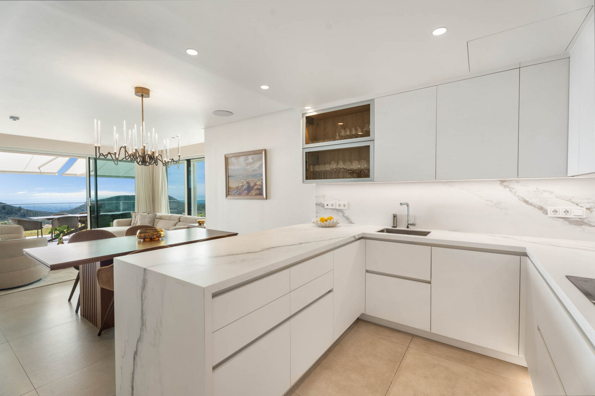 A konyha egy teljesen felszerelt designer installáció Gunni és Trentino, a kiváló minőségű készülékek és a kortárs Cabinetry fogant mind a mindennapi élet és a szórakoztató. a tiszta építészeti vonalak és az integrált felületek erősítik a lakóhely esztétikai következetességét.