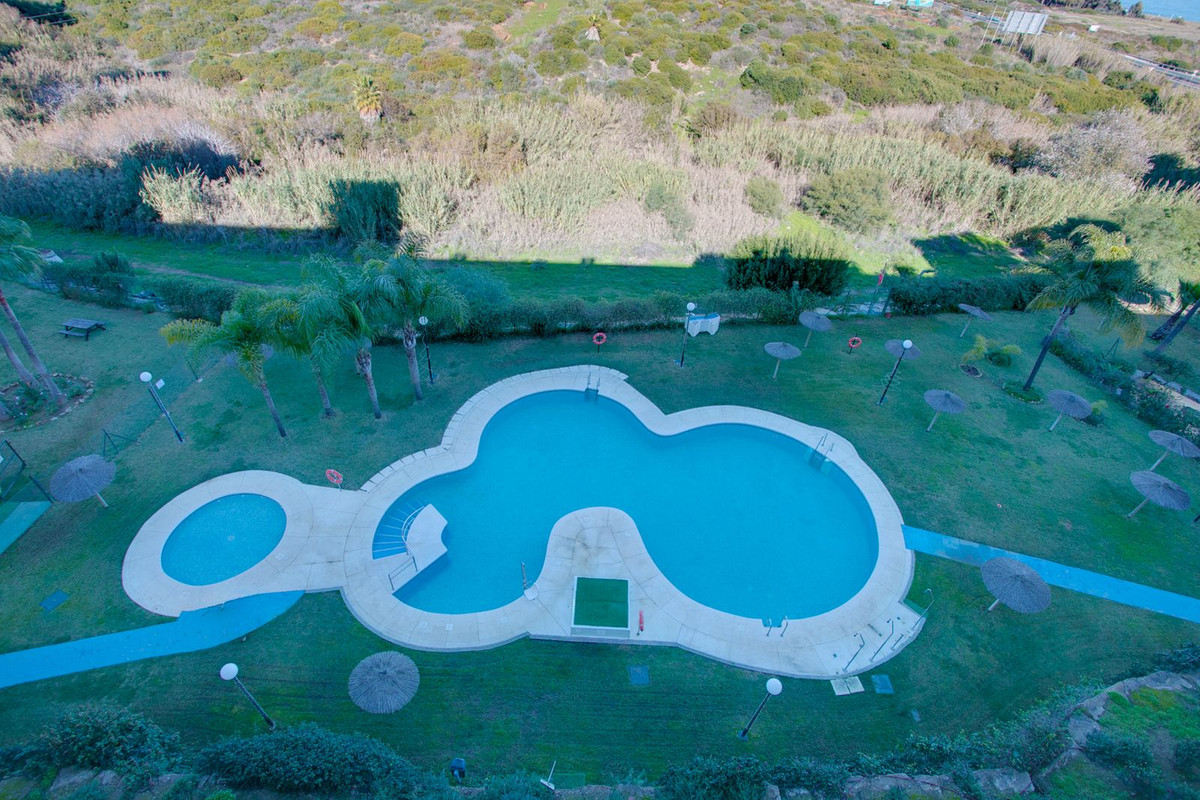 Az apartman 128 m ² -es, 11 m ² -es fedett terasszal és 21 m ² -es szoláriummal rendelkezik, lenyűgöző kilátással a Földközi-tengerre és a gibraltári sziklára. Az alsó szinten van két hálószoba felszerelt szekrények, felújított fürdőszoba, vendég wc, és egy új, teljesen felszerelt konyha, amely megnyílik egy világos nappali közvetlen hozzáférést biztosít a terasz. Az emeleten van a harmadik hálószoba, ensuite fürdőszobával és közvetlen bejárattal a szoláriumhoz.