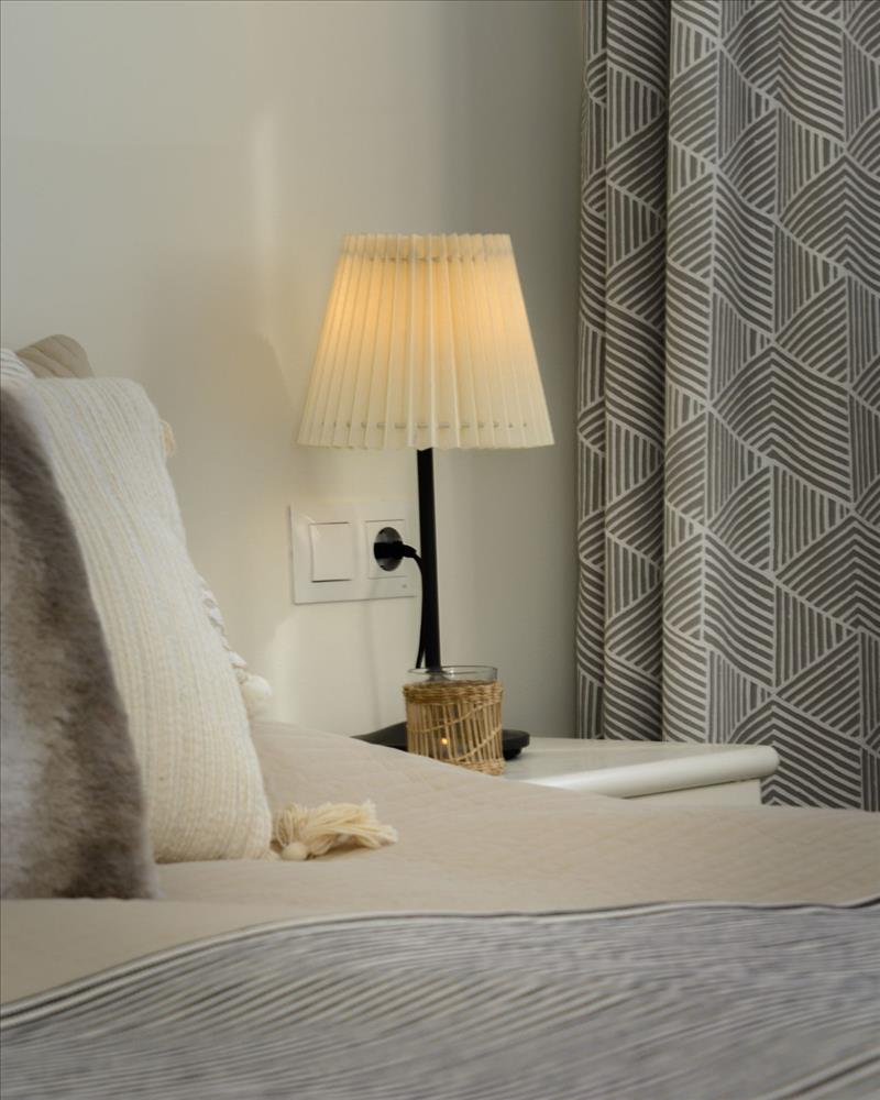 Hálószoba: Egy nagyon nagy és tágas kétágyas hálószoba egy nagy beépített szekrény. Tengeri kilátás.