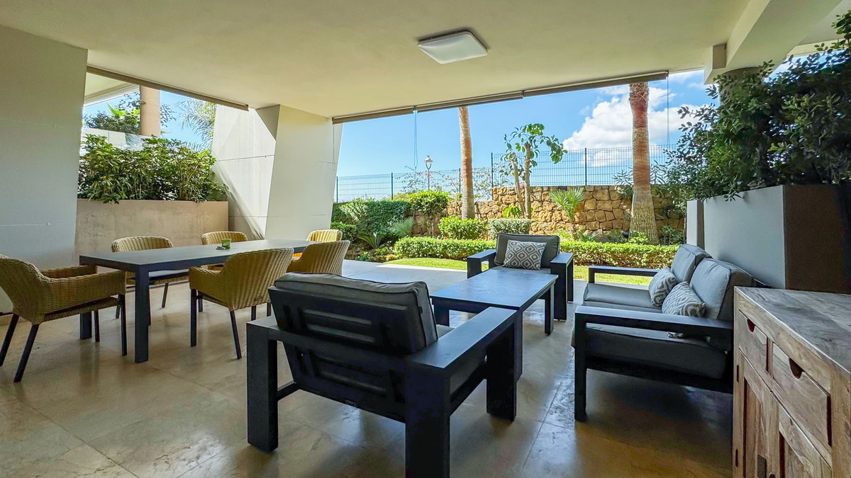 A világos és elegáns kerti apartman La Montesa de Marbella, ahol a modern építészet találkozik a laidback életmód Cabopino.
