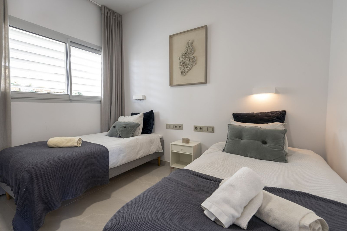 Ahogy belépsz, egy kifinomult belső tér üdvözöl, ahol a modern esztétika megfelel a melegnek és a funkcionalitásnak. a tágas nappali természetes fényben fürdik, köszönhetően a padló-to-plafon ablakoknak, amelyek lélegzetelállító kilátást biztosítanak a Földközi-tengerre. Stílusos bútorok és elegáns dekoráció hozza létre a hangulatot, így ez a tökéletes hely a pihenésre és szórakozásra.