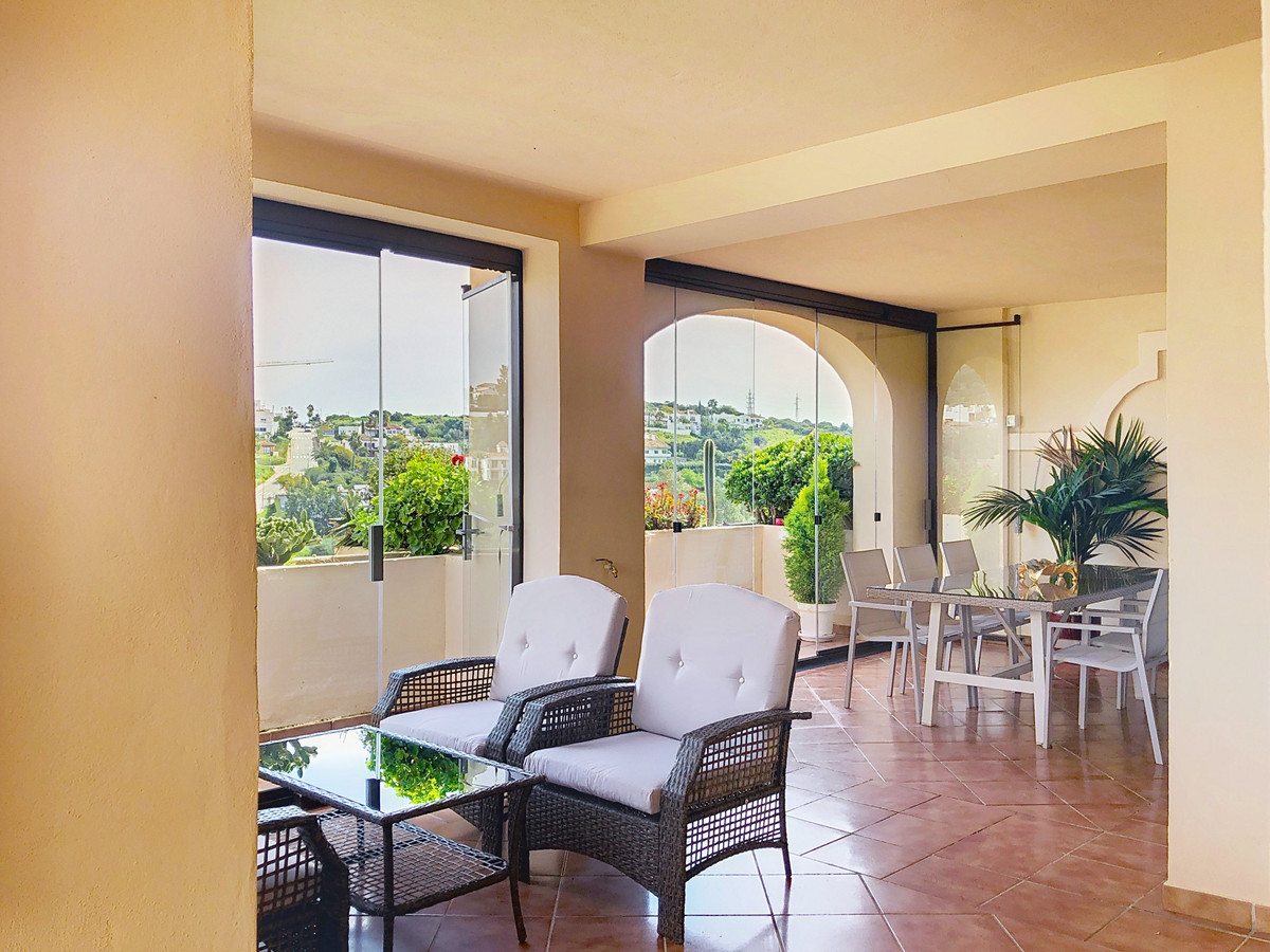 Ez az apartman található Estepona West, közvetlenül az Azata golfpálya mellett. a golfpálya első vonalán és hegyvidéki környezetben látványos kilátás nyílik a golfpályára, a hegyekre és a közeli tóra. Továbbá, közelsége a tenger, a városközpont, és éttermek teszi ideális választás azok számára, akik keresik a kényelmet és a nyugalom természetes környezetben.Az ingatlan belső tere tágas és világos nappali, közvetlen hozzáférést biztosít egy nagy, Lumon üveggel zárt teraszhoz, mely nyáron és télen egyaránt tökéletes a szabadtéri és golfkilátások élvezésére. a konyha teljesen felújított kiváló minőségű bútorok, teljesen felszerelt, és úgy tervezték, hogy maximalizálja a funkcionalitás, beleértve egy külön mosoda. Márvány padló és üveg ajtók hozzá egy modern és elegáns érintés a tér.