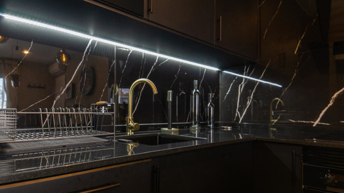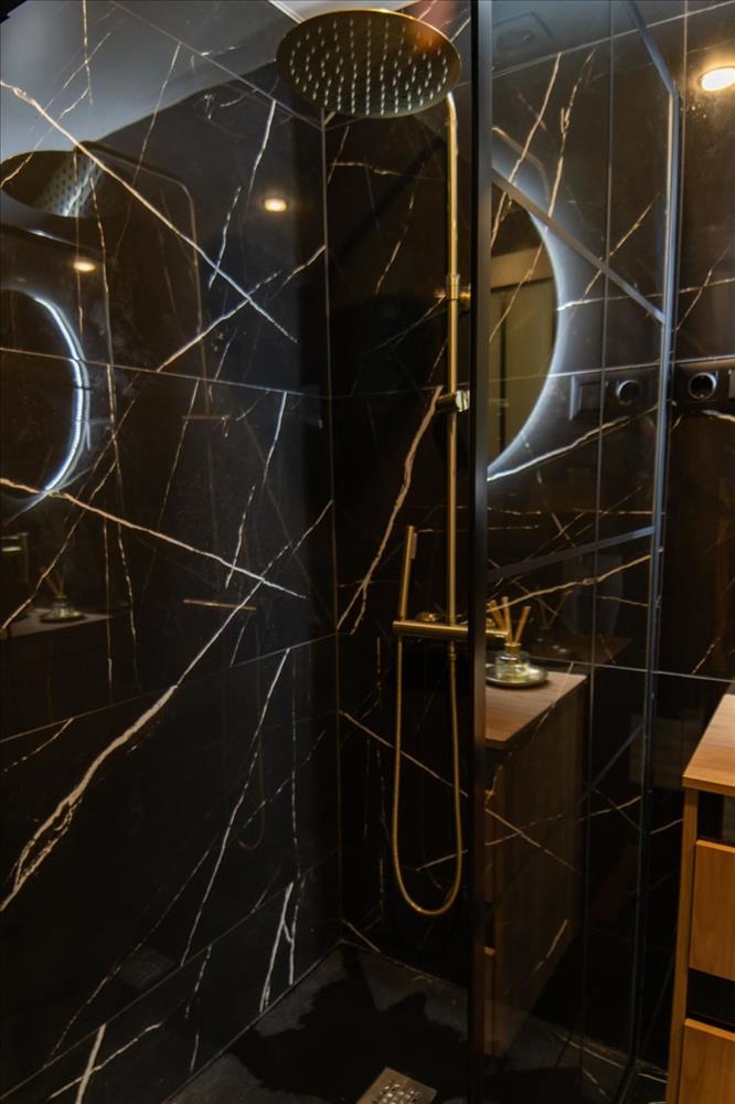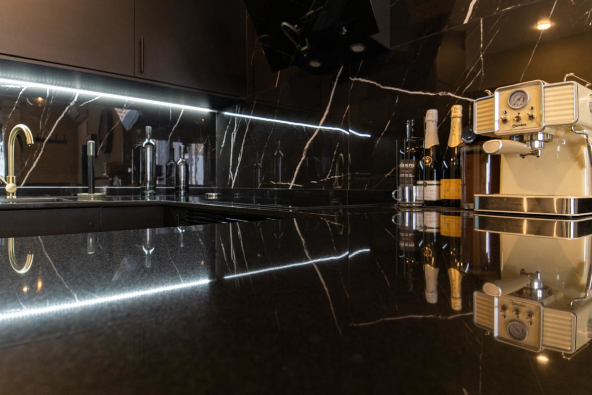 A stílusos konyha egy igazi fénypont. Az elegáns fekete márvány kialakításával egy exkluzív és modern érzést hoz létre, amely tökéletes mind a mindennapi élet, mind a társadalmi pillanatok számára. Minden készülékek és részletek jól átgondolt, hogy a konyha egyaránt szép és működőképes.