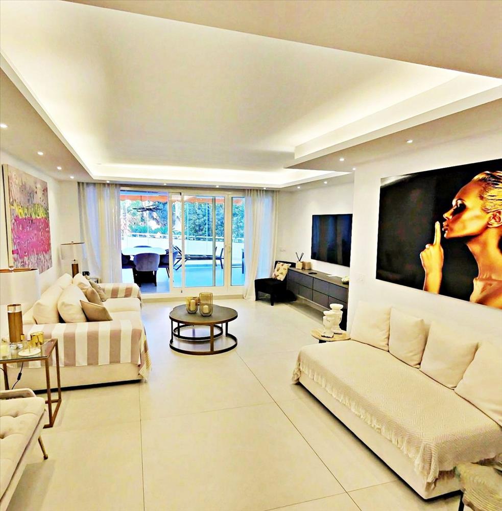 A természetes fénnyel elárasztott nappali elegáns privát teraszra nyílik - ideális helyre, ahol lélegzetelállító naplemente és a kiváltságos mediterrán éghajlat várja a vendégeket. a -the-art konyha állama, teljesen felszerelt és átgondolt, kifinomult esztétikával ötvözi a funkcionalitást.