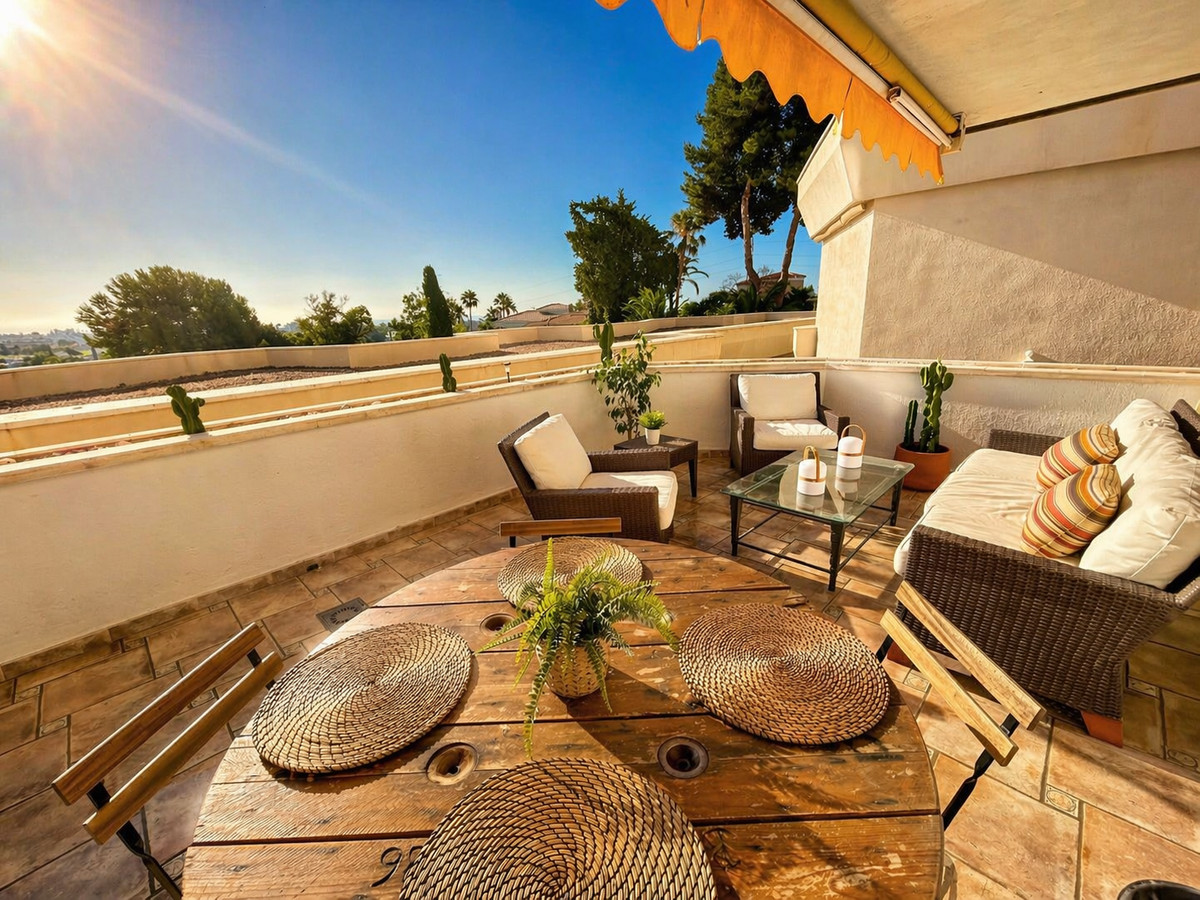 Az ingatlan kellemes kilátás nyílik a hegyekre, a golfpályára és a részleges tengerre, nyugodt és pihentető hangulatot teremtve.